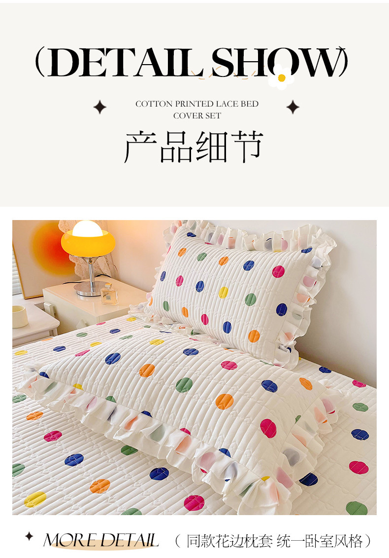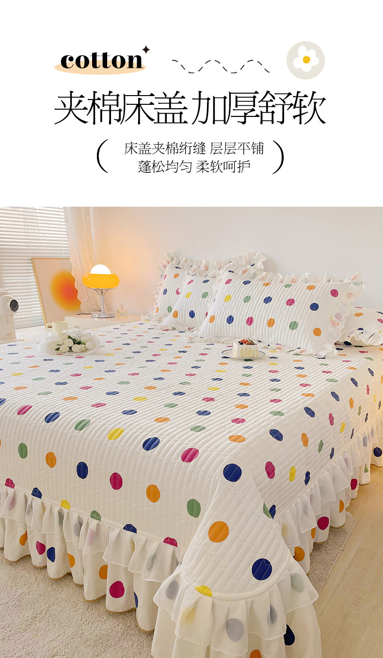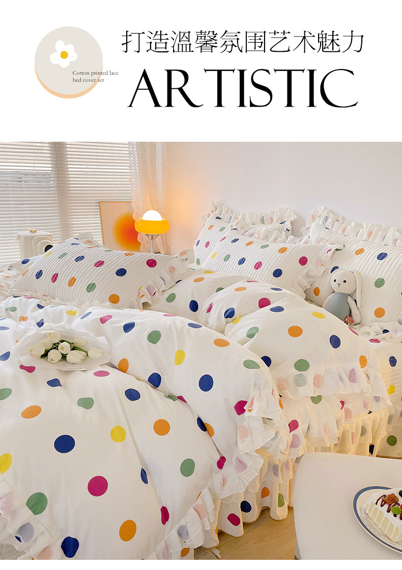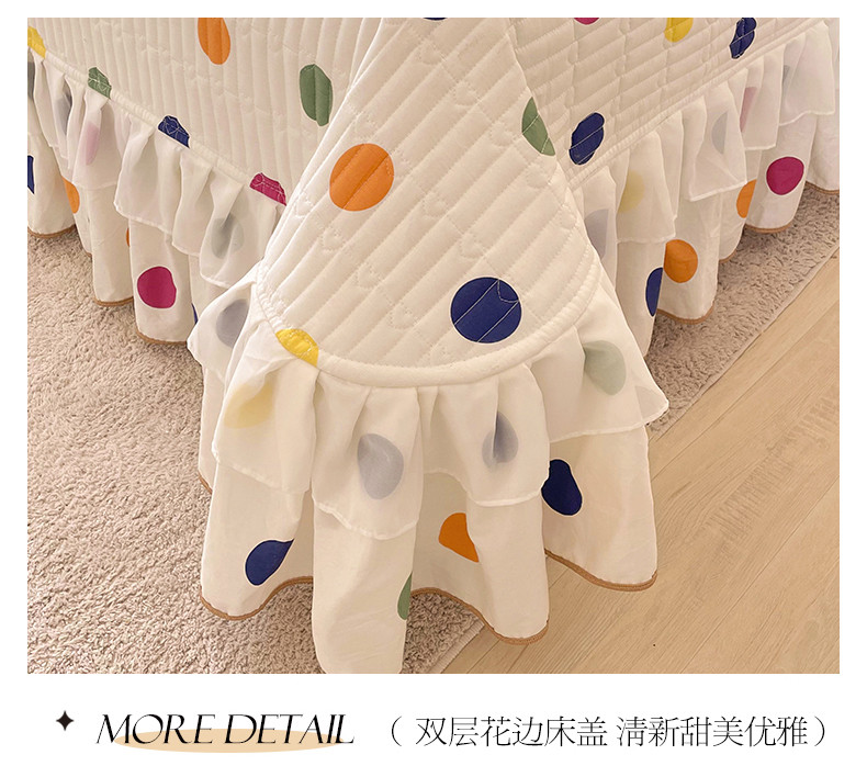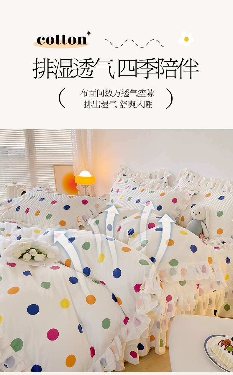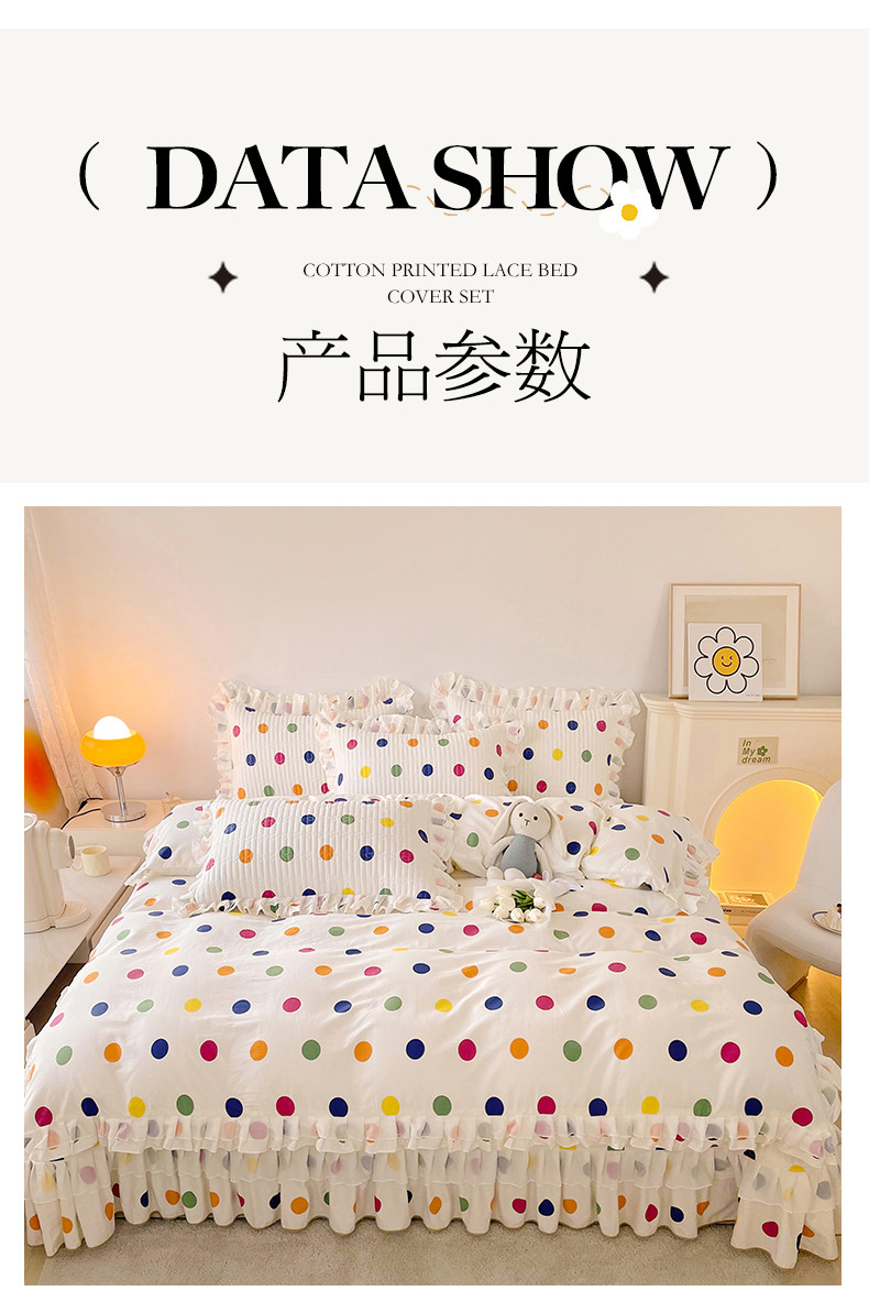 宜凡 2023新款全棉双层花边床盖四件套系列 彩色波点
