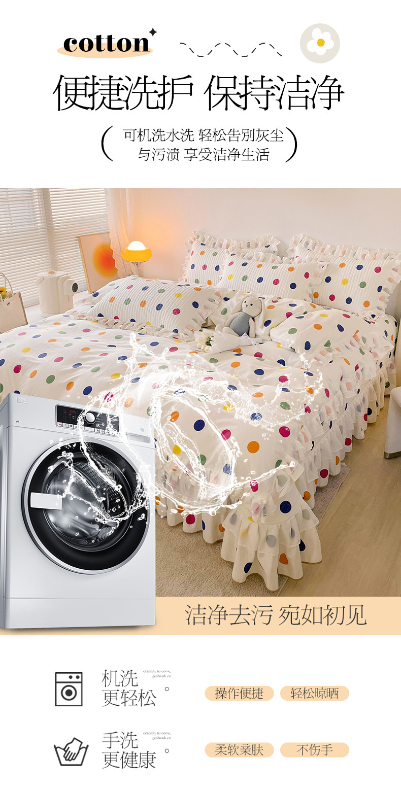 • 91家纺网 家纺一手货源 找家纺 宜凡 2023新款全棉双层花边床盖四件套系列 彩色波点