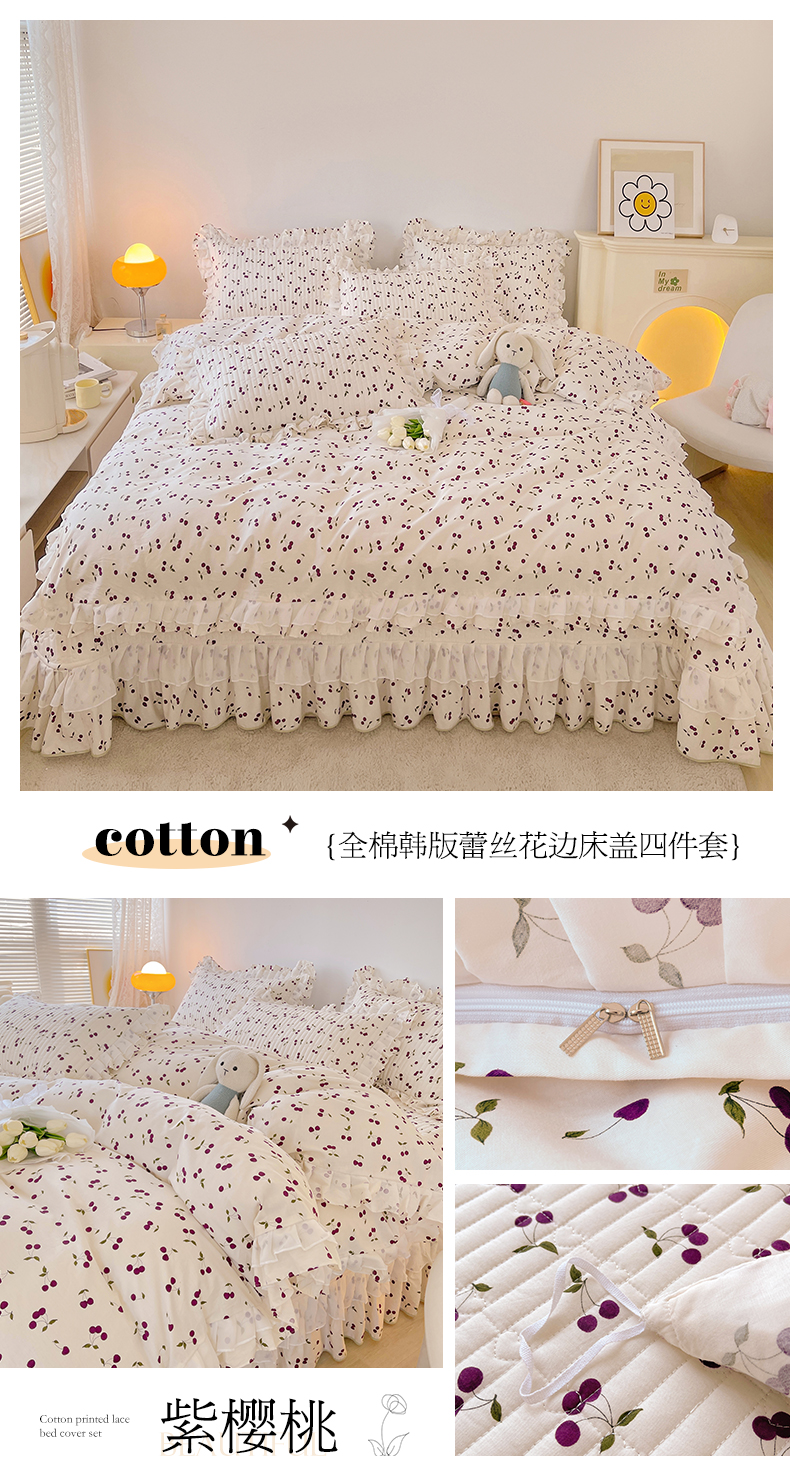 宜凡 2023新款全棉双层花边床盖四件套系列 紫樱桃
