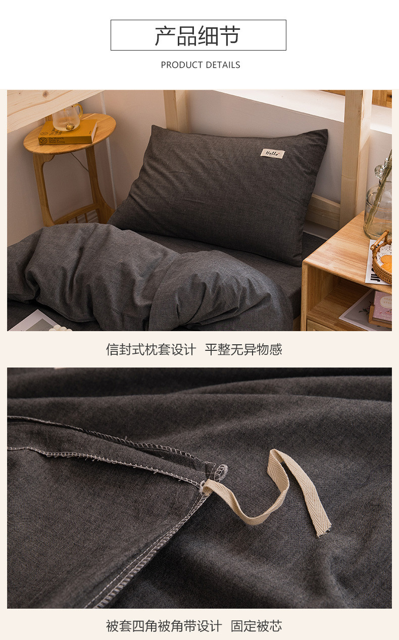 当前位置: 91家纺网 > 商品网购 > 床品套件 > 三件套 > 柠萌 2025新款A类全棉色织水洗棉学生宿舍上下铺全棉三件套 深灰