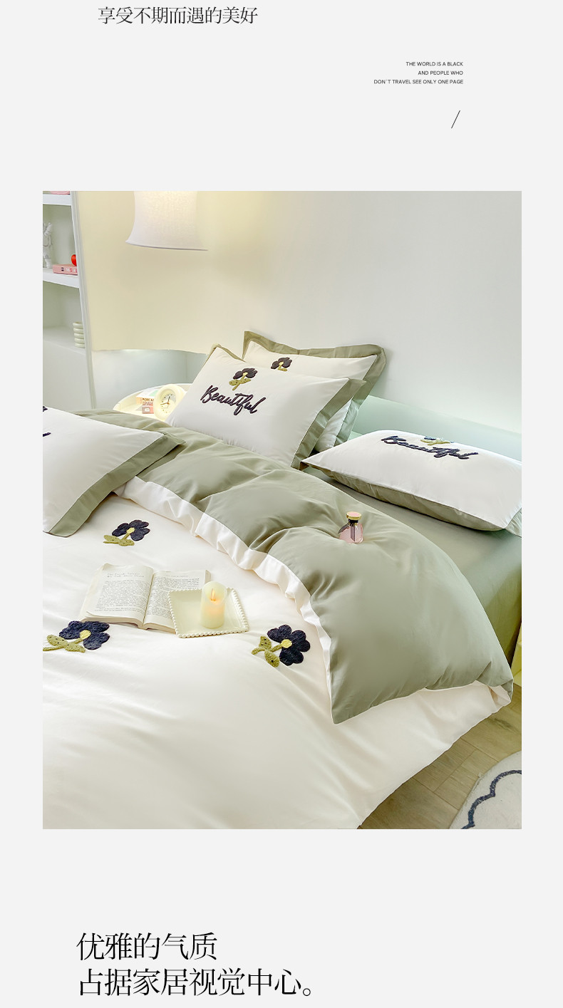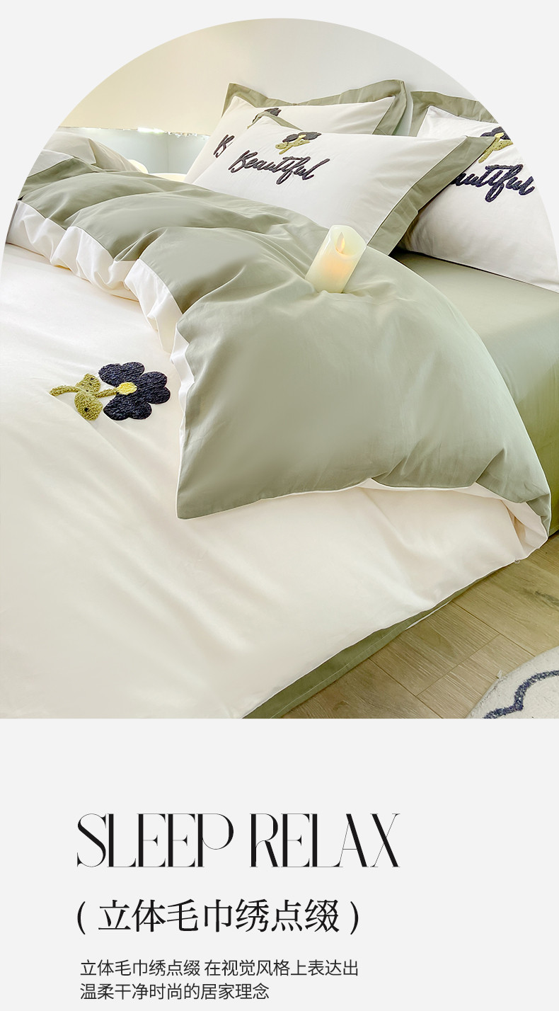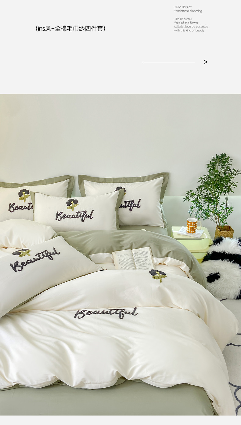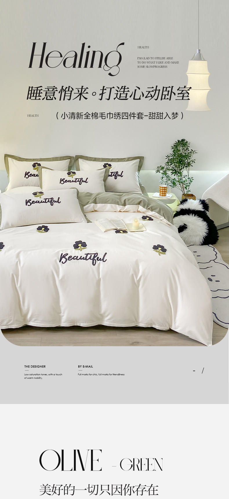 商品名称:帅露 2023新款全棉ins小清新毛巾绣系列四件套三件套 心愿草
