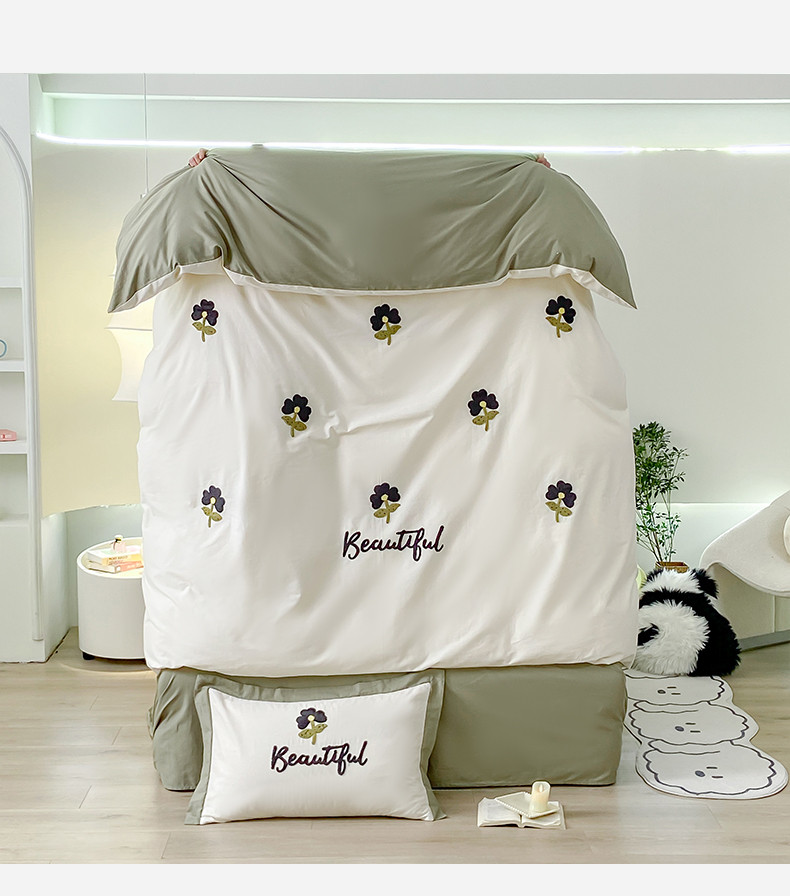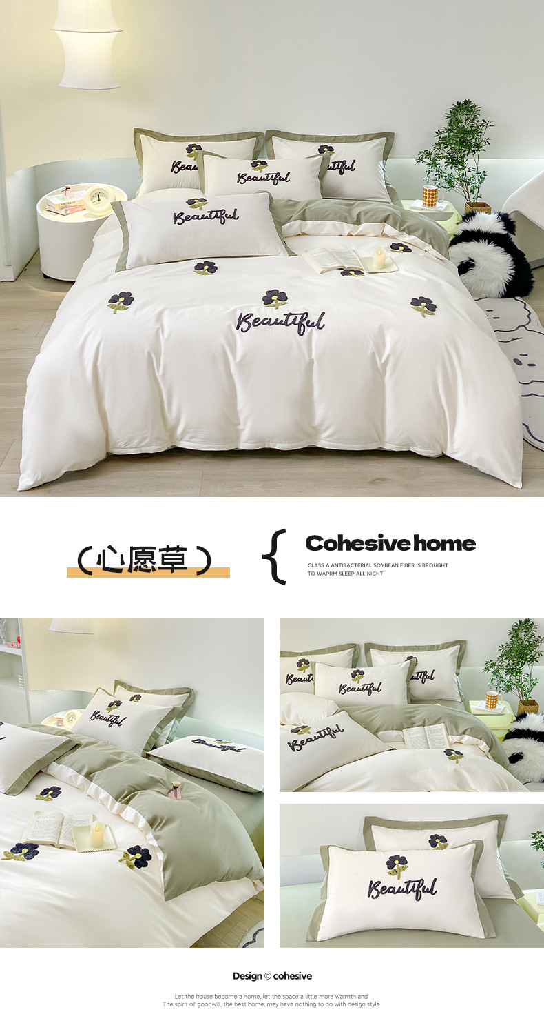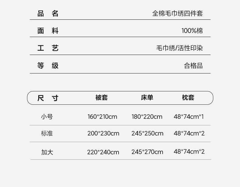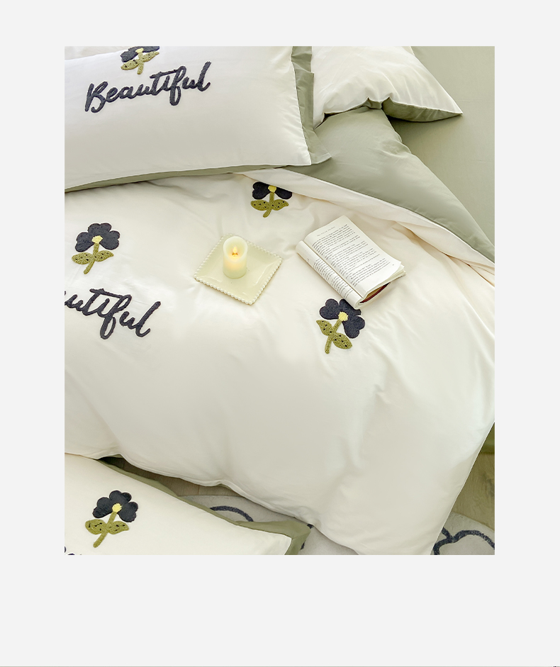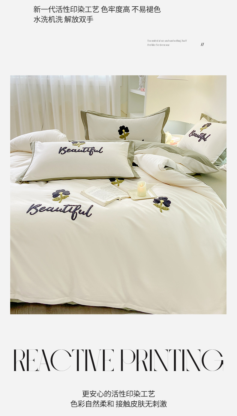 商品名称:帅露 2023新款全棉ins小清新毛巾绣系列四件套三件套 心愿草