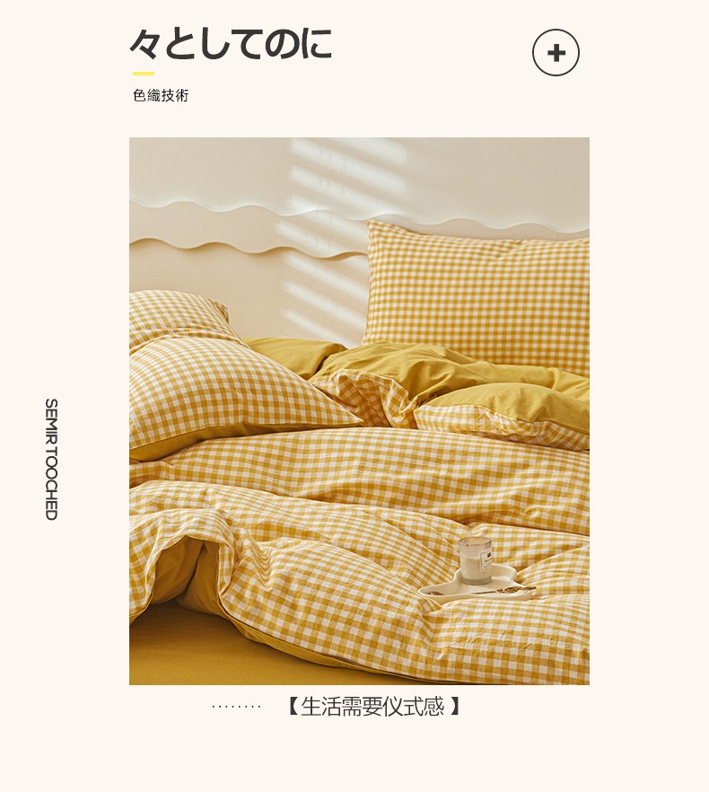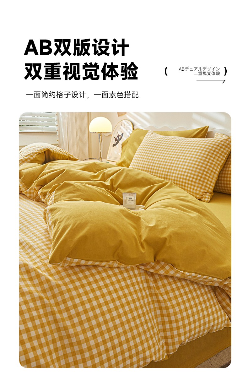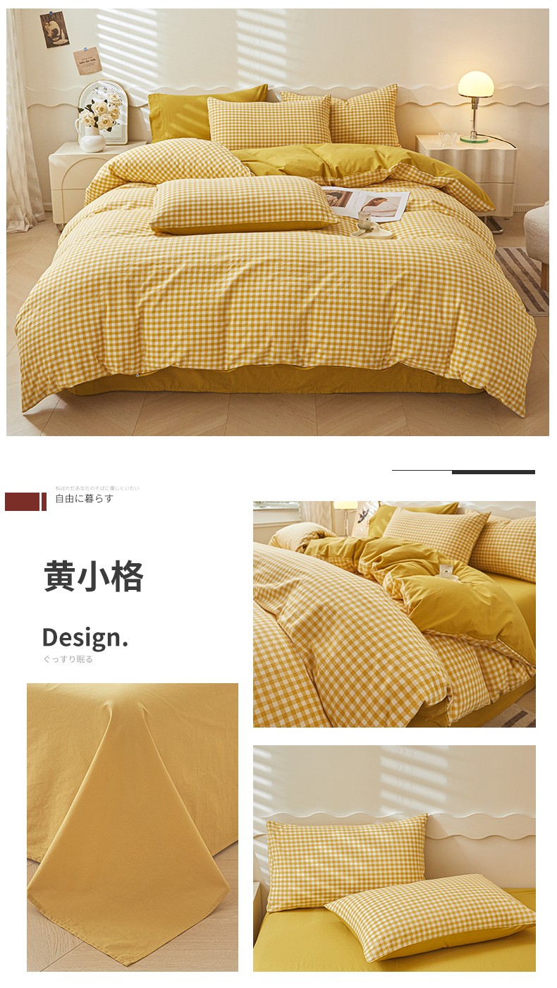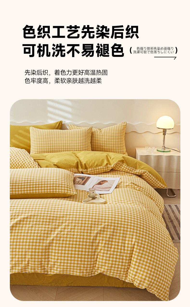 吉象 2023新款全棉色织水洗棉四件套 黄小格