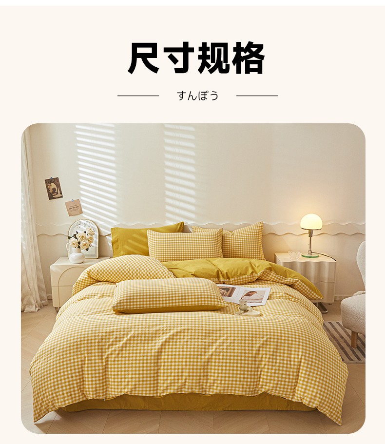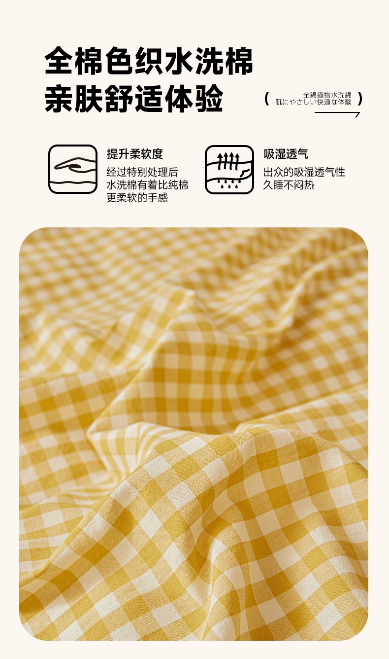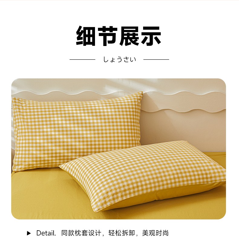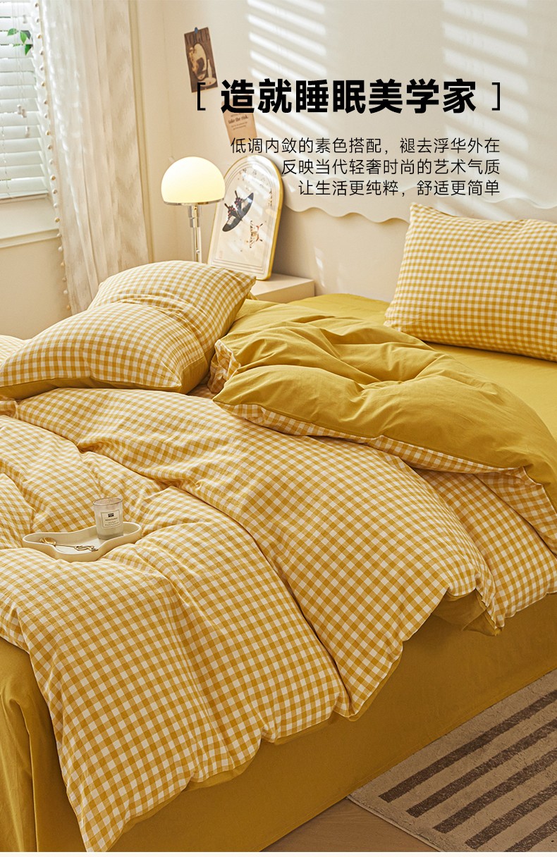 商品名称:吉象 2023新款全棉色织水洗棉四件套 黄小格