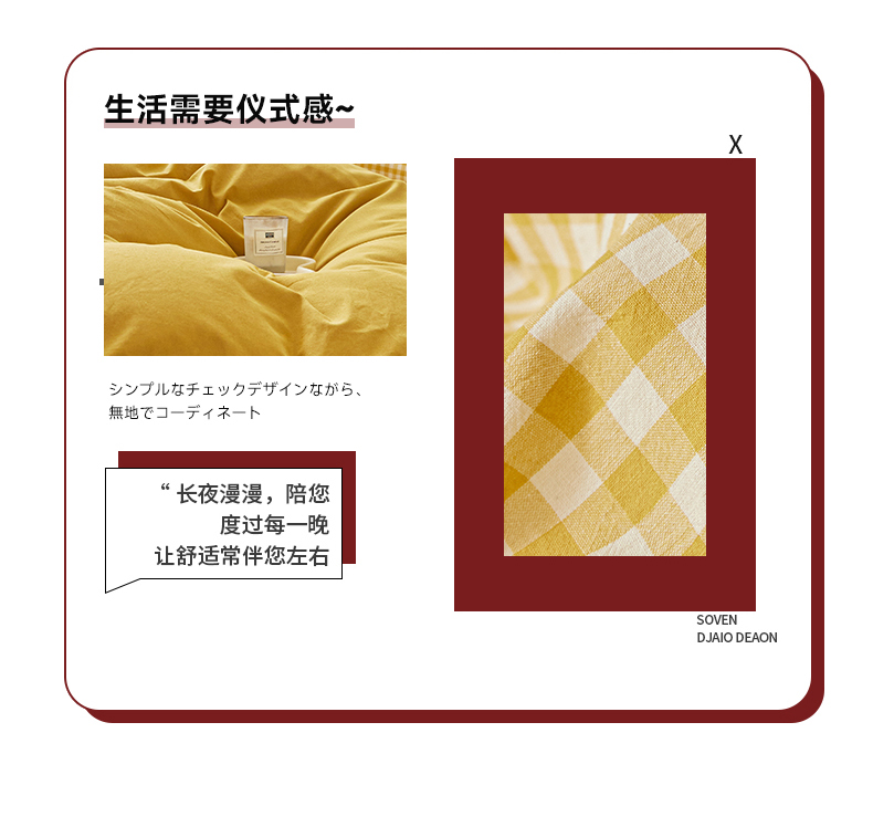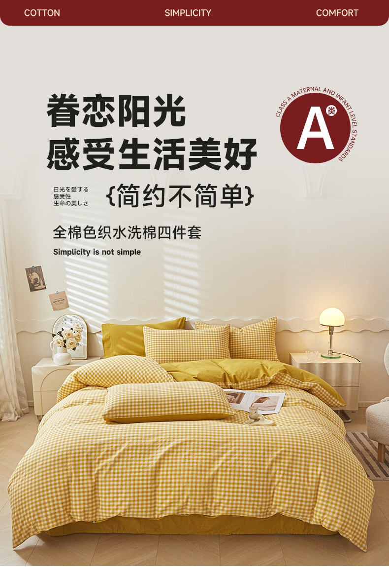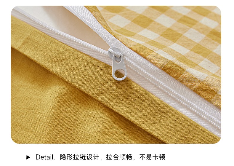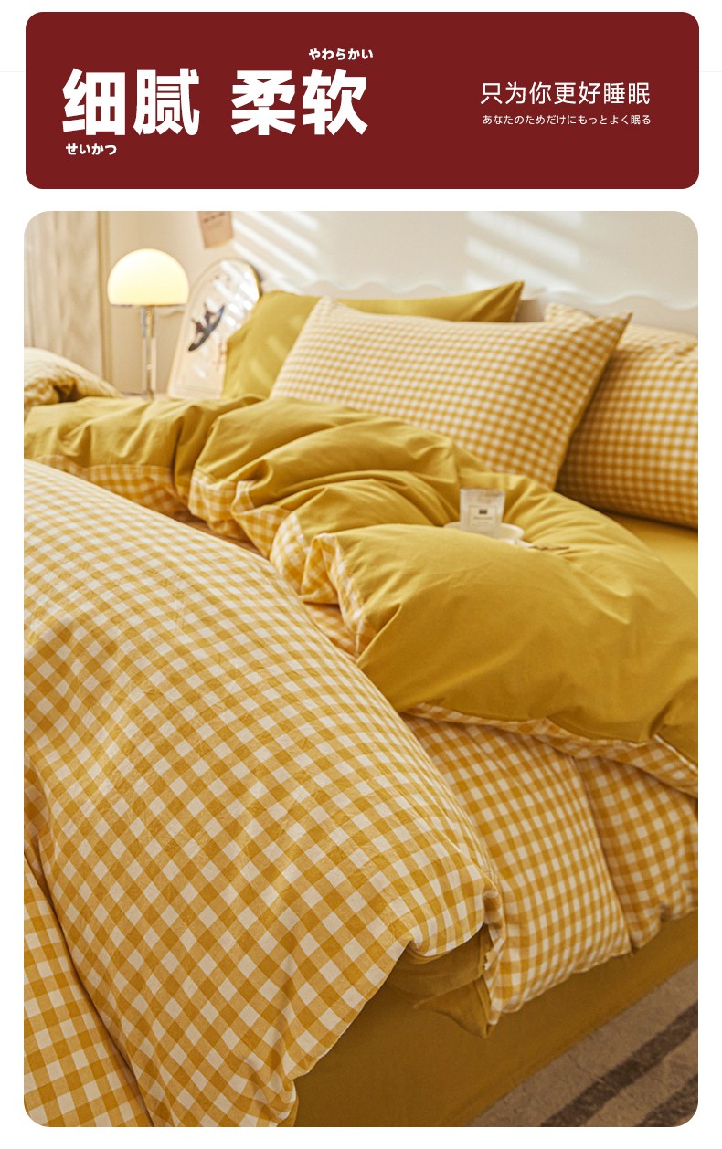 商品名称:吉象 2023新款全棉色织水洗棉四件套 黄小格