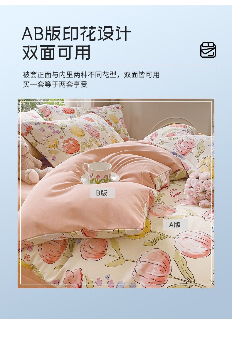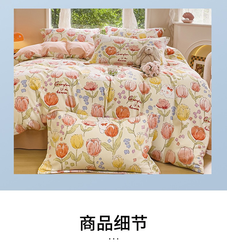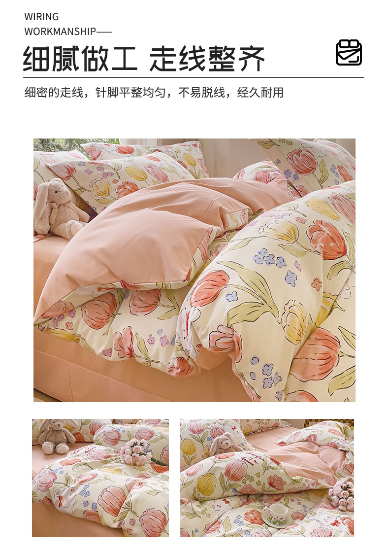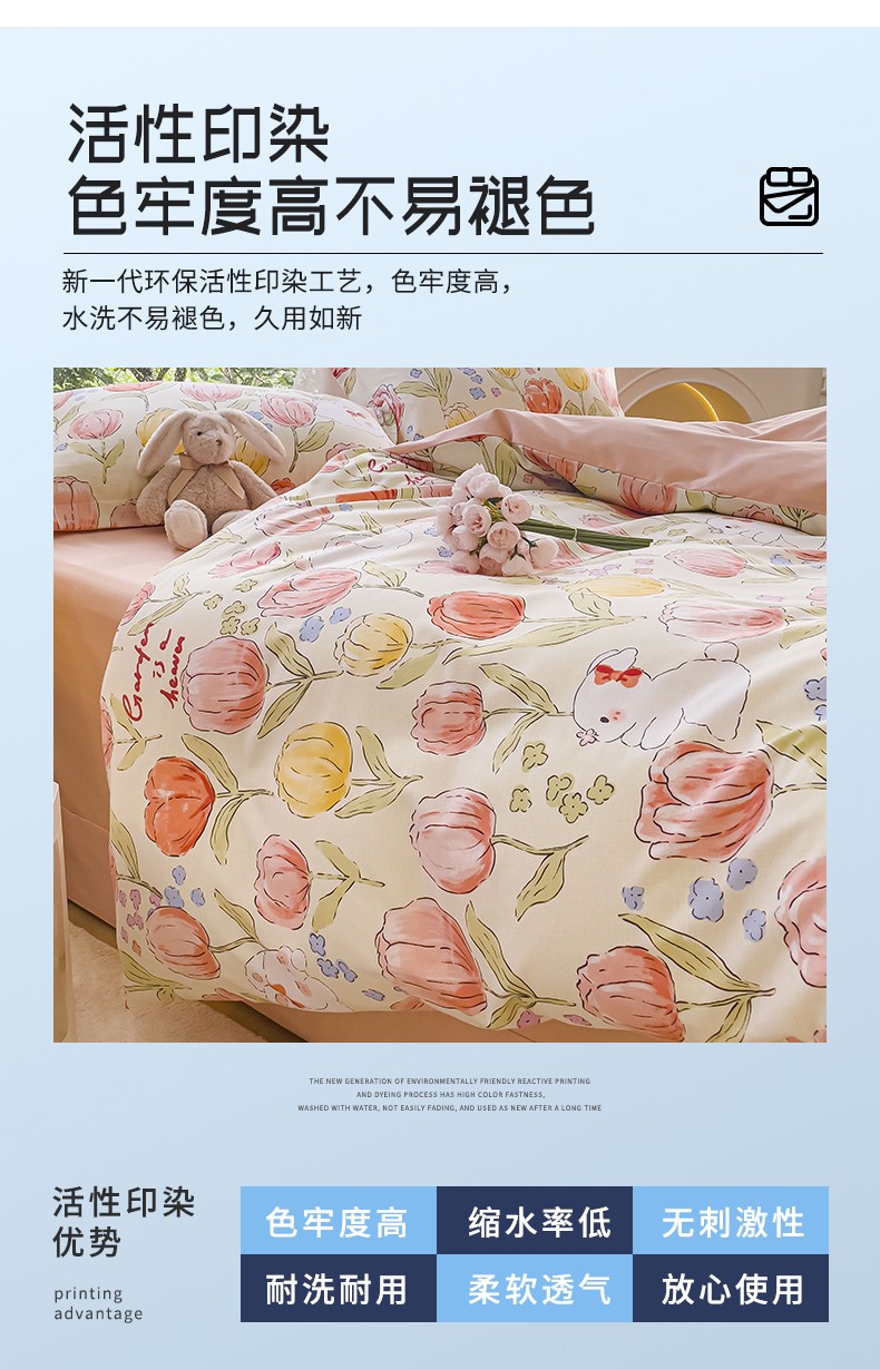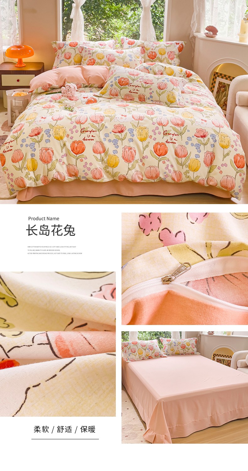 商品名称:金丝鸟 2023新款原棉磨毛四件套小清新系列 长岛花兔