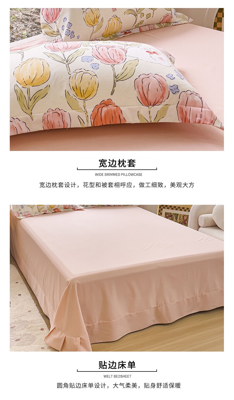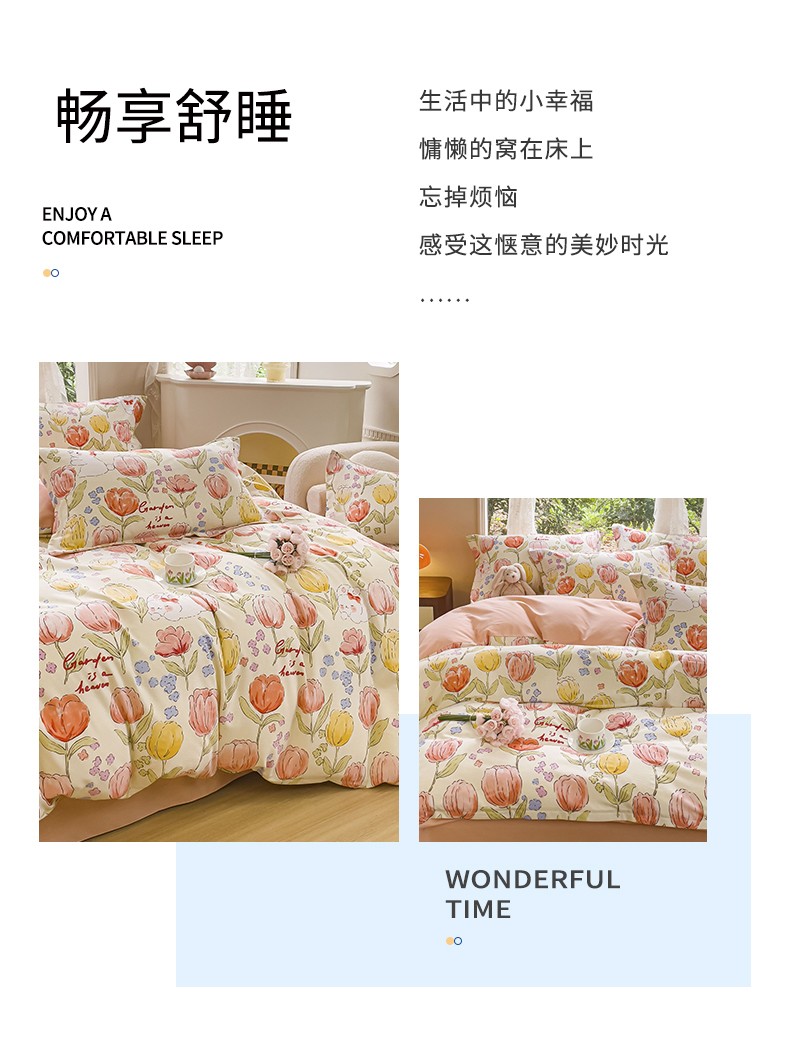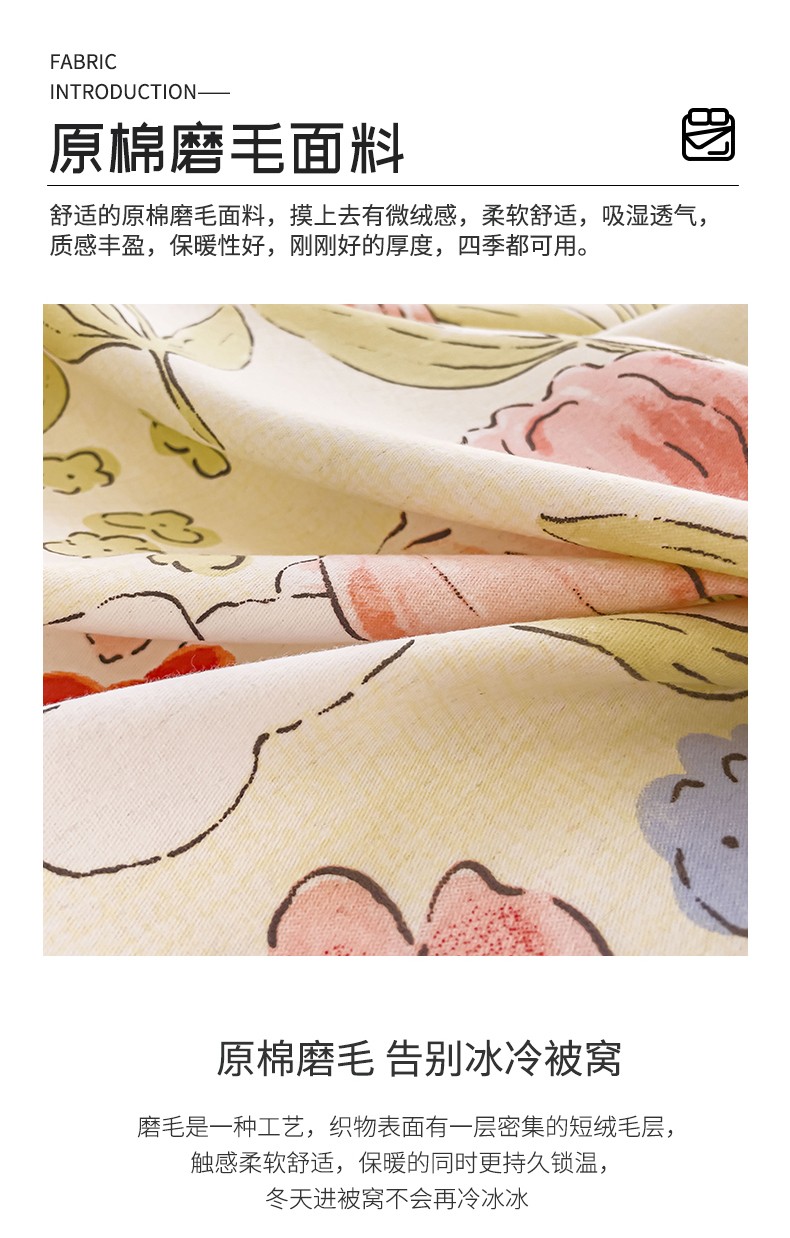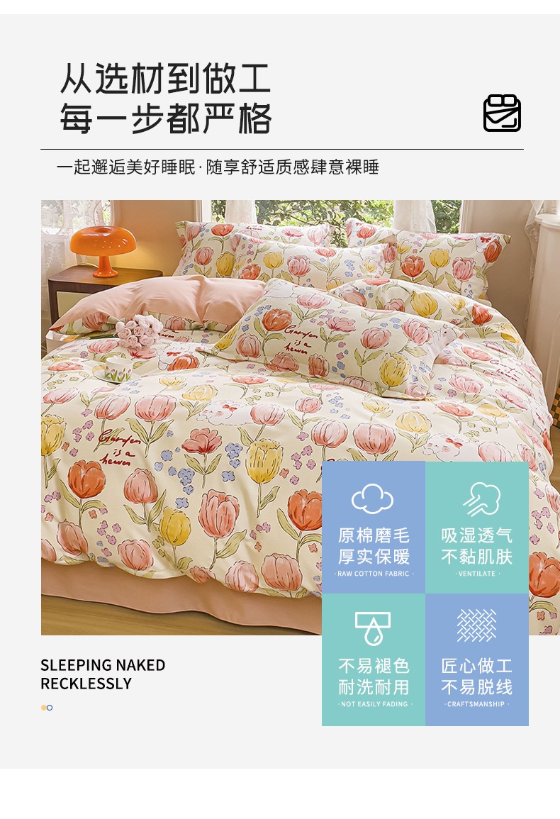商品名称:金丝鸟 2023新款原棉磨毛四件套小清新系列 长岛花兔