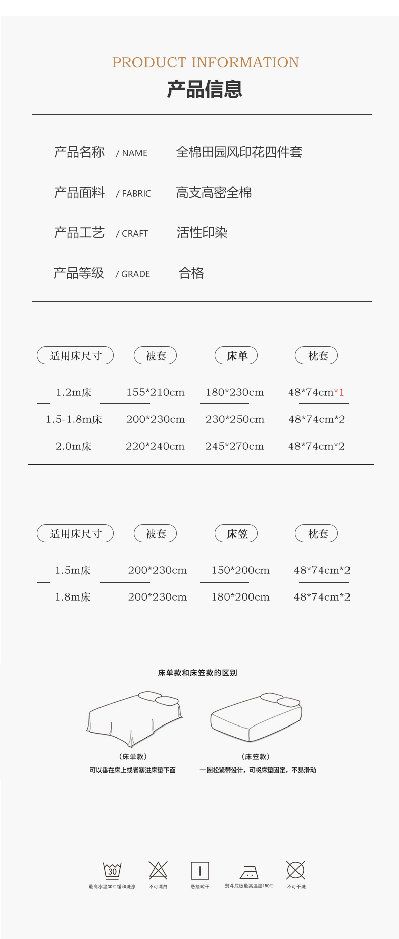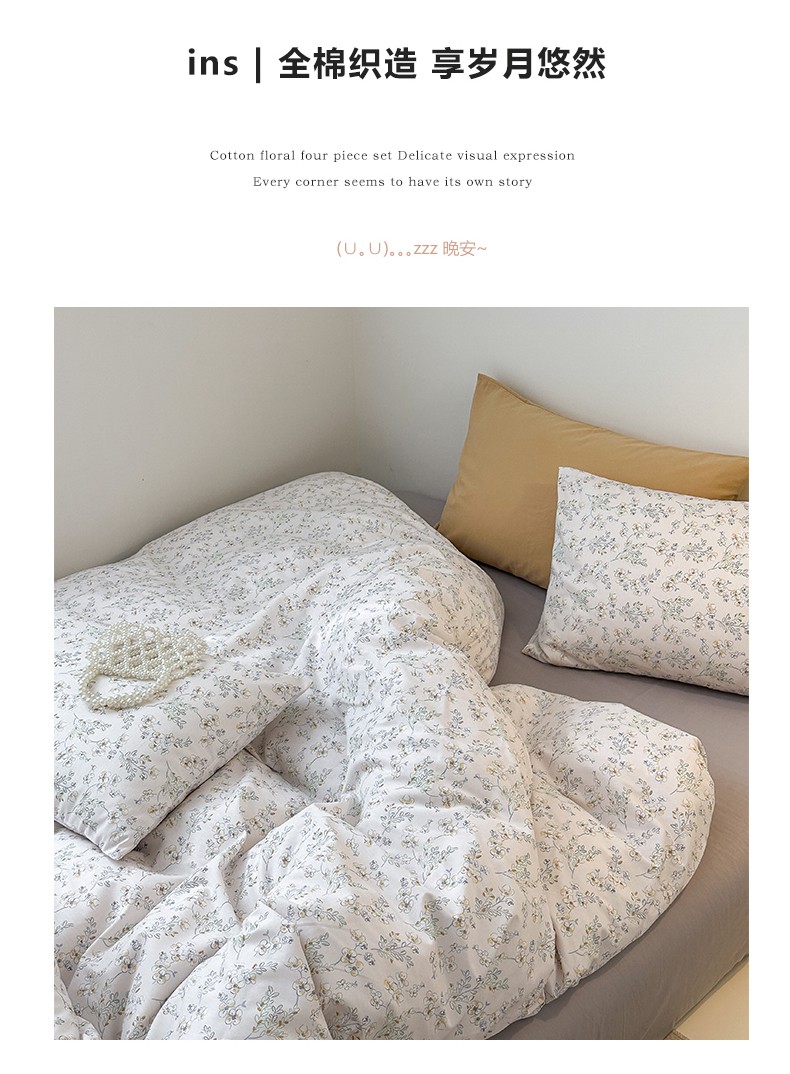 商品名称:捌月新款13372全棉田园风印花四件套小红书同款四件套直播新品 花季