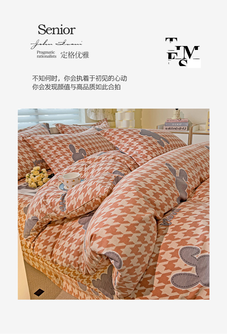 当前位置: 91家纺网 > 商品网购 > 床品套件 > 四件套 > 全棉普通四件套 > 品乐家纺 2023新款全棉喷气磨毛印花四件套 时尚风标-豆沙