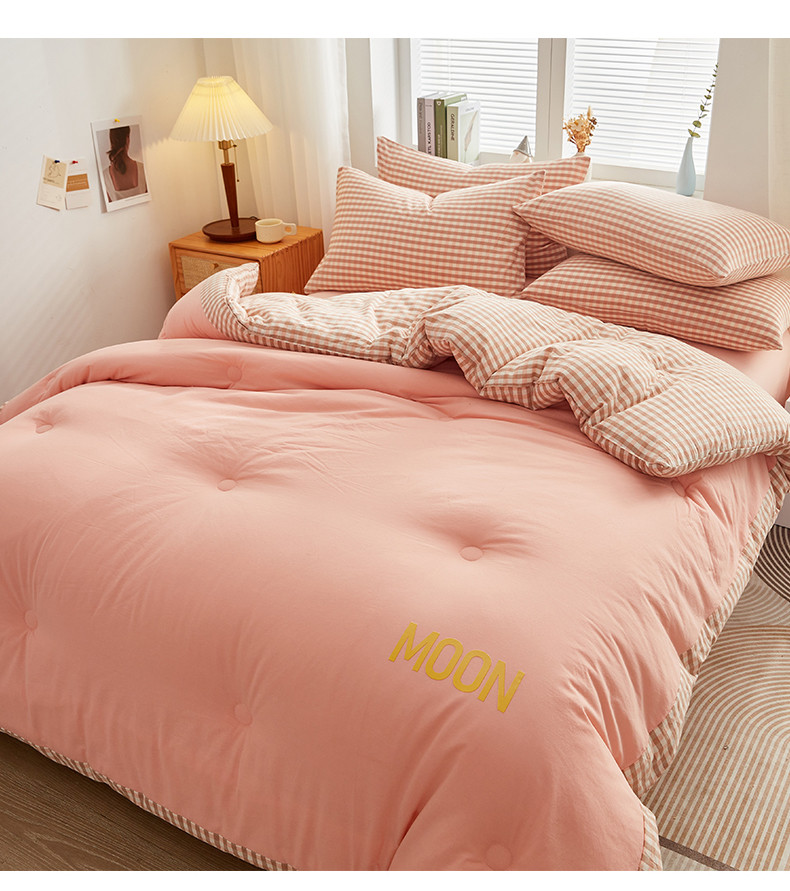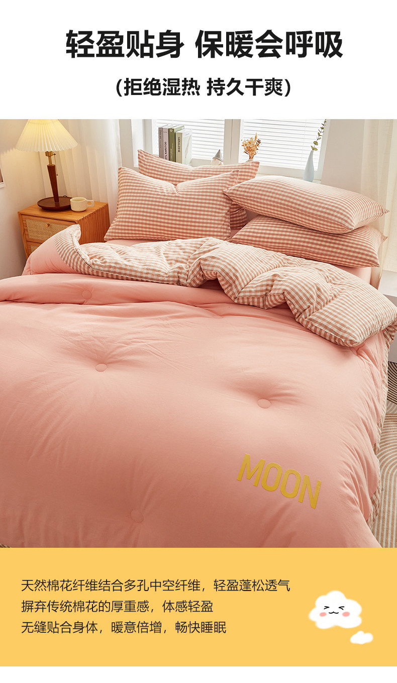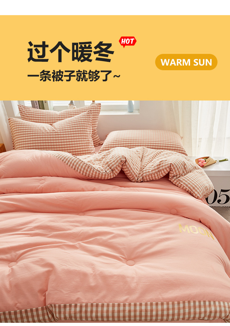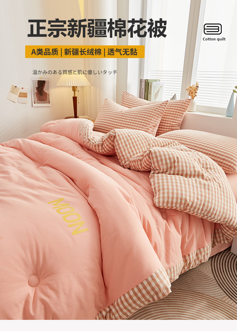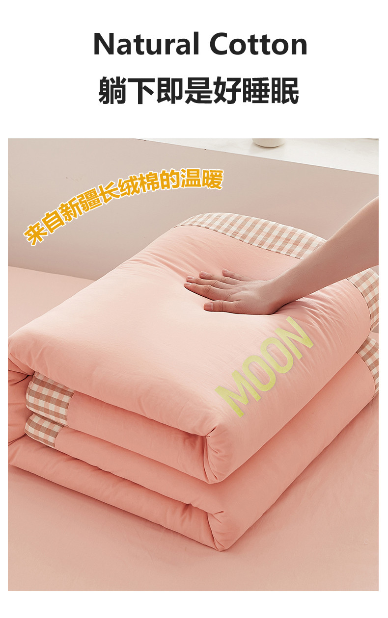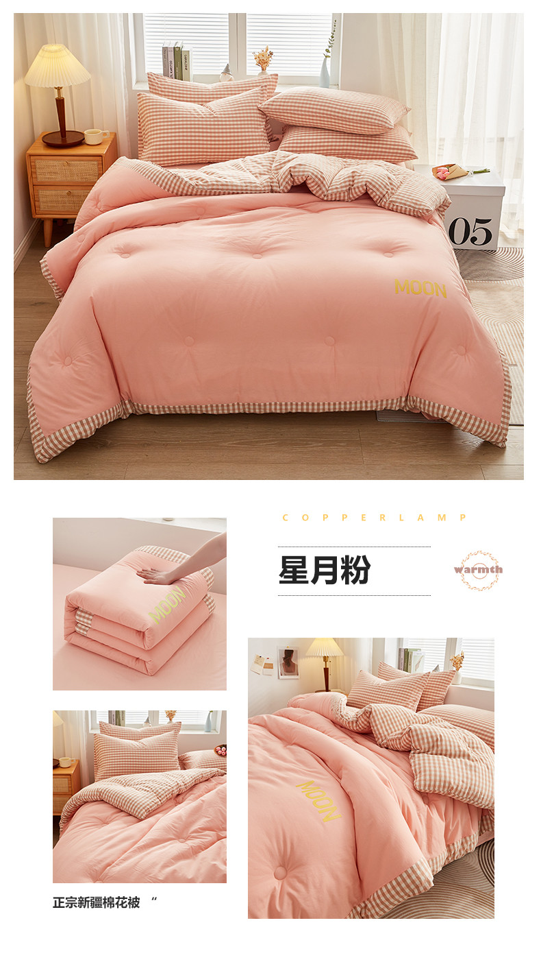 • 91家纺网 家纺一手货源 找家纺 暖阳 2025新款A类50%棉花拼角冬被新疆棉花被子被芯春秋被 星月粉