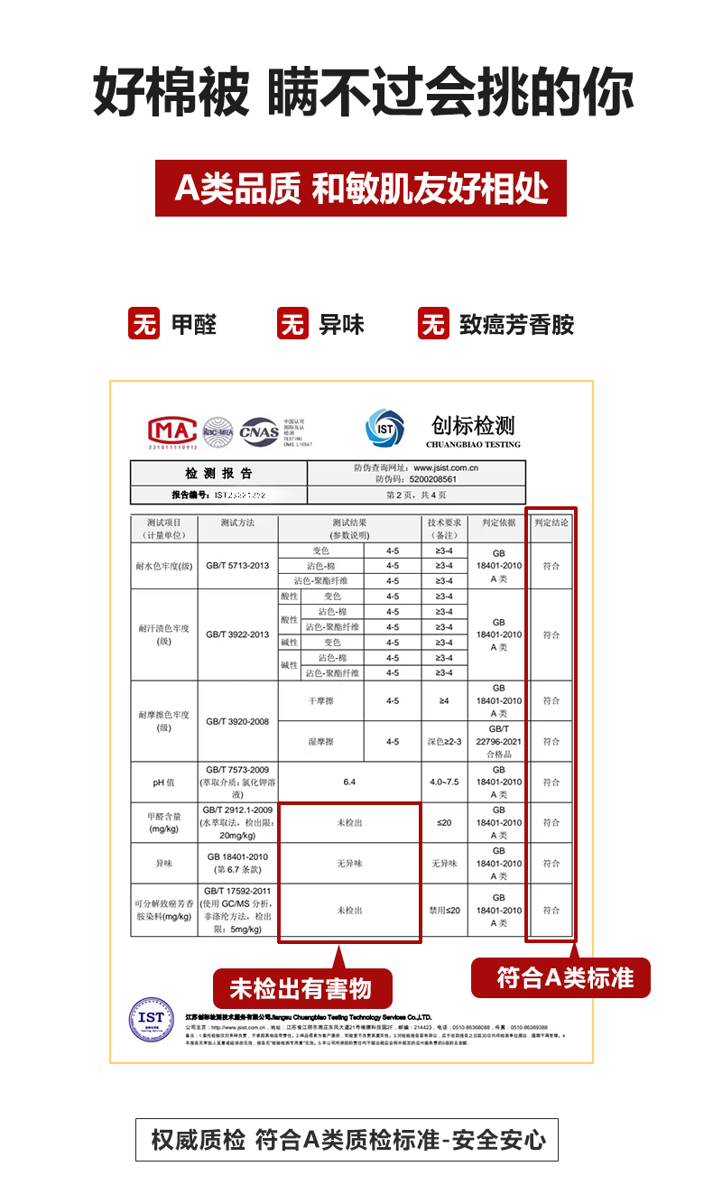 4、通州区市场监管局川姜分局友情提醒:近期针对抗静电,无静电,抗菌防螨,及有关舒适度,百分比的举报高发。为不影响商品正常销售,请各商家高度重视,自检自查及时整改,谢谢配合!