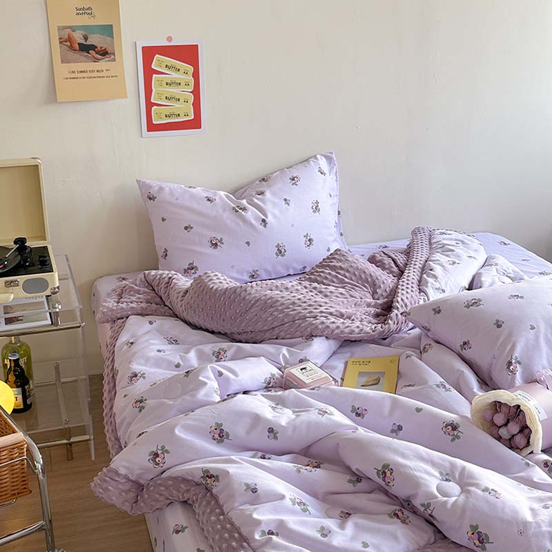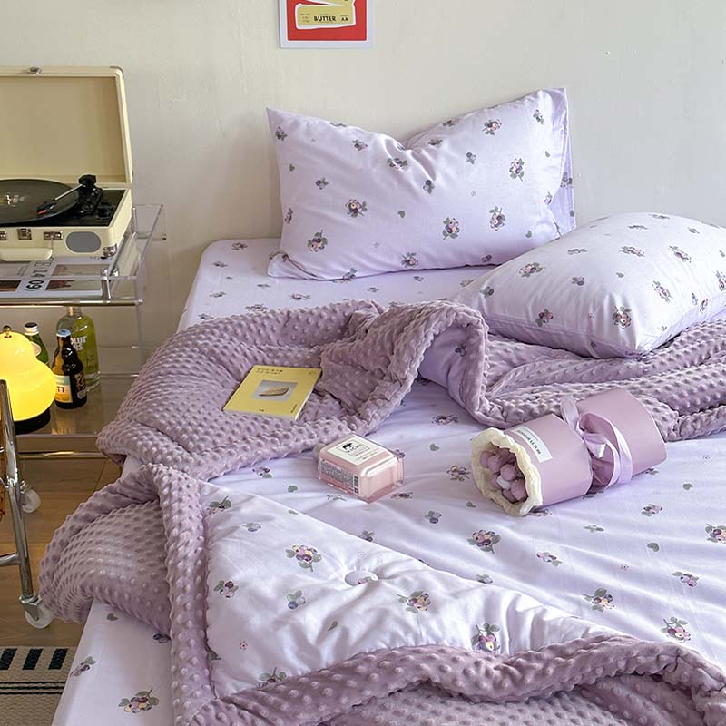 商品名称:星期八 2023新款复古碎花全棉豆豆春秋被四件套 蓝莓