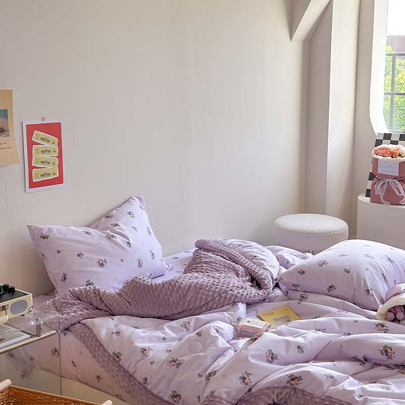 星期八 2023新款复古碎花全棉豆豆春秋被四件套 蓝莓