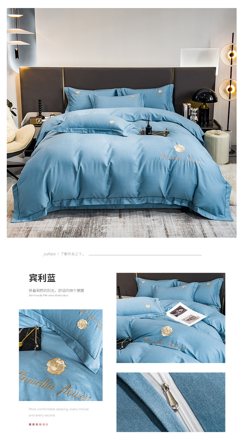 商品名称:N先生 2023新款加厚全棉磨毛四件套-米兰系列 宾利蓝