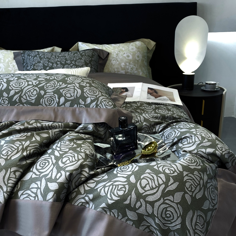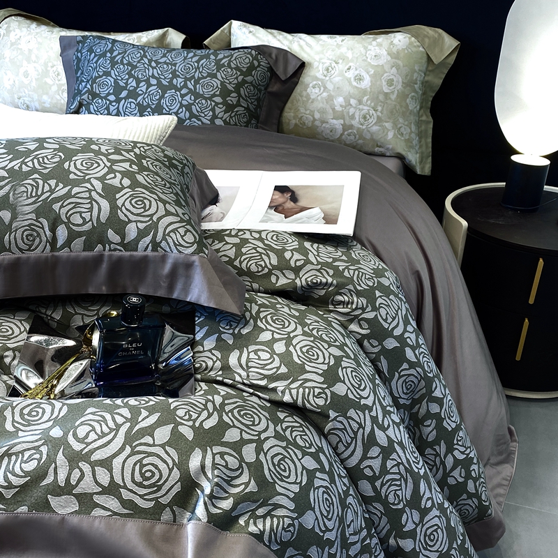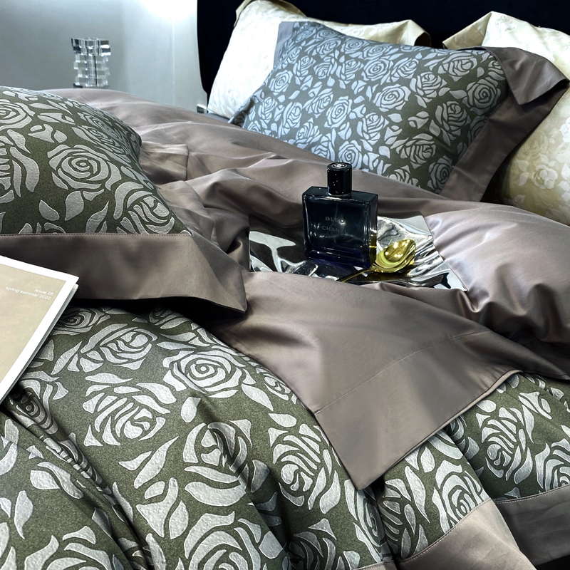 商品名称:鹿班家居 2023新款海岛玫瑰系列100支长绒棉四件套(标准会员-20) 海岛玫瑰-油绿