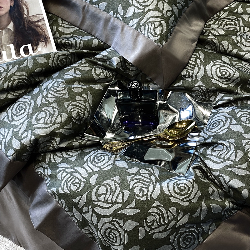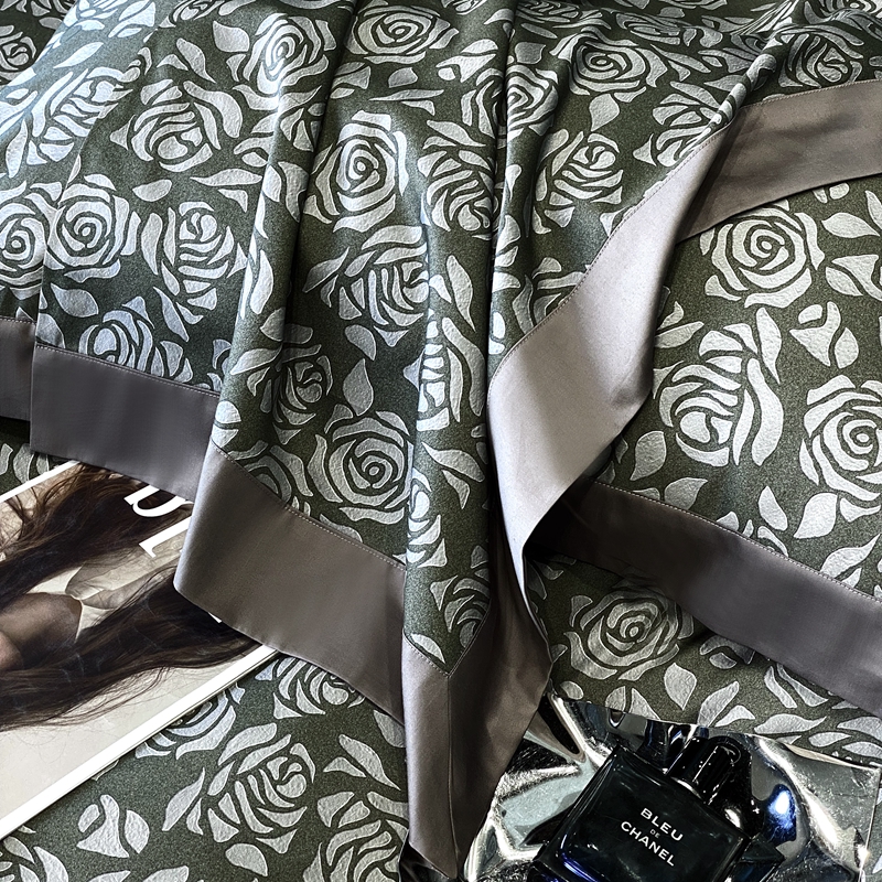 鹿班家居 2023新款海岛玫瑰系列100支长绒棉四件套(标准会员-20) 海岛玫瑰-油绿