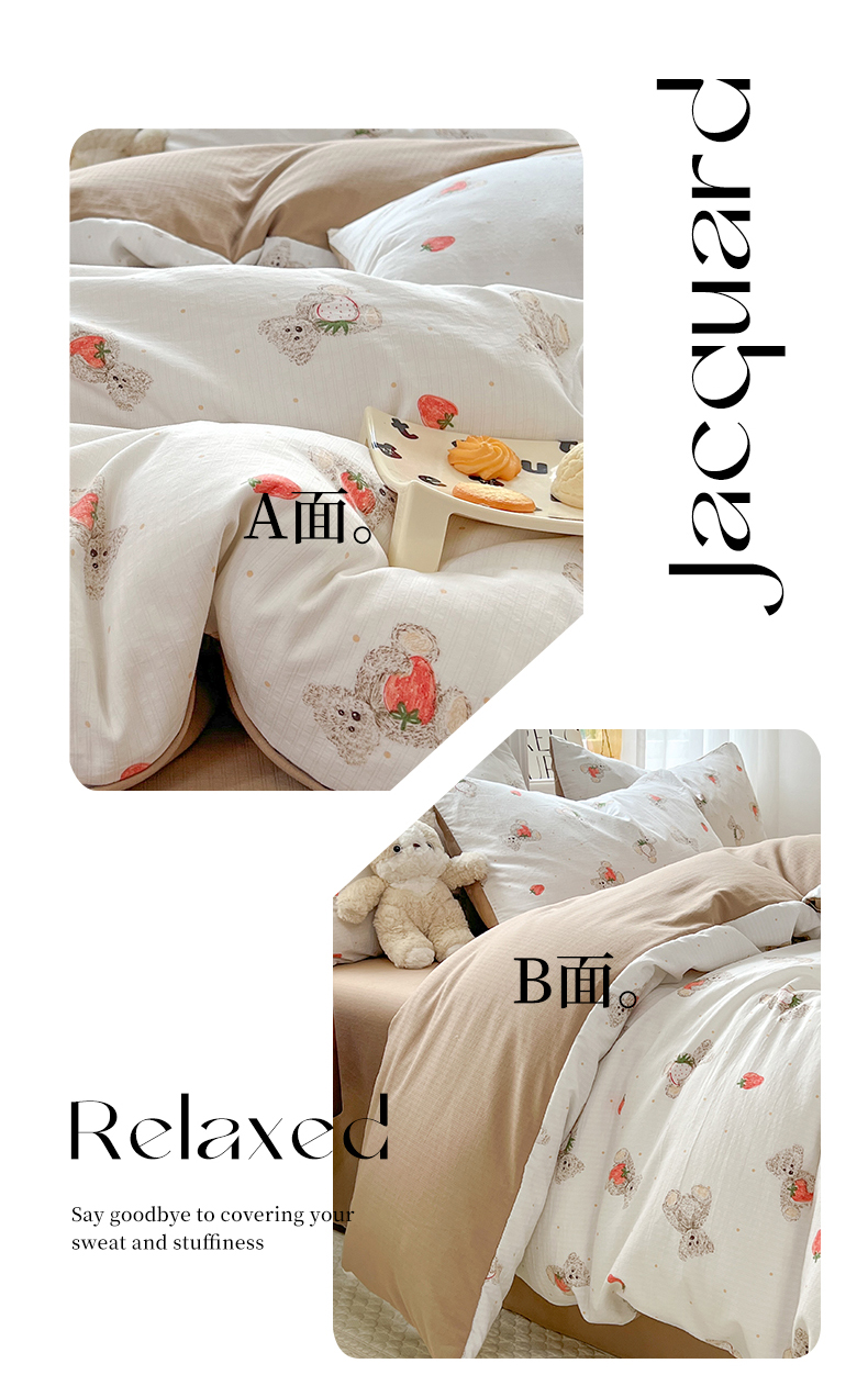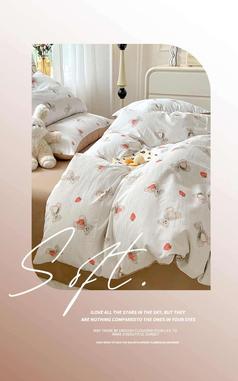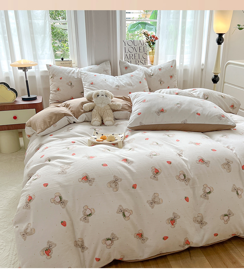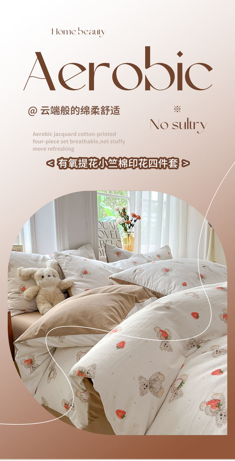 当前位置: 91家纺网 > 商品网购 > 床品套件 > 四件套 > 提花四件套 > 妖妖家纺 2023新款有氧提花小竺棉印花四件套 草莓熊熊