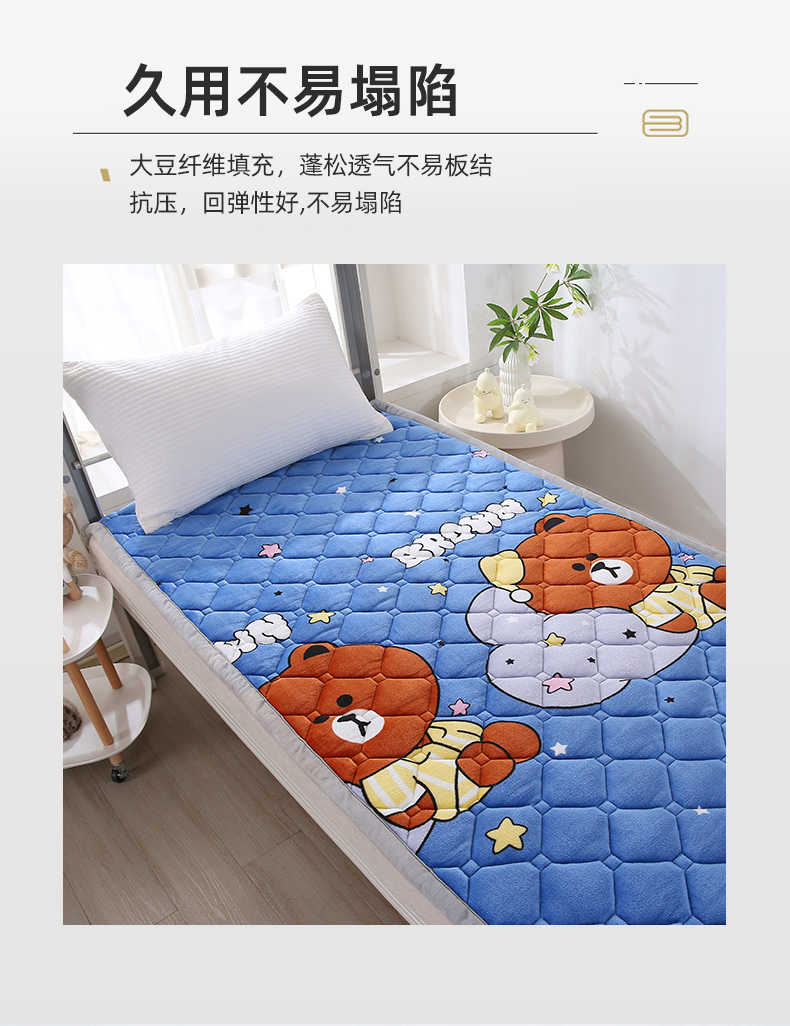 当前位置: 91家纺网 > 商品网购 > 床垫/床褥 > 普通床垫 > 东宇床垫 2025新款A类抗菌牛奶绒加厚大豆学生床垫 萌萌熊