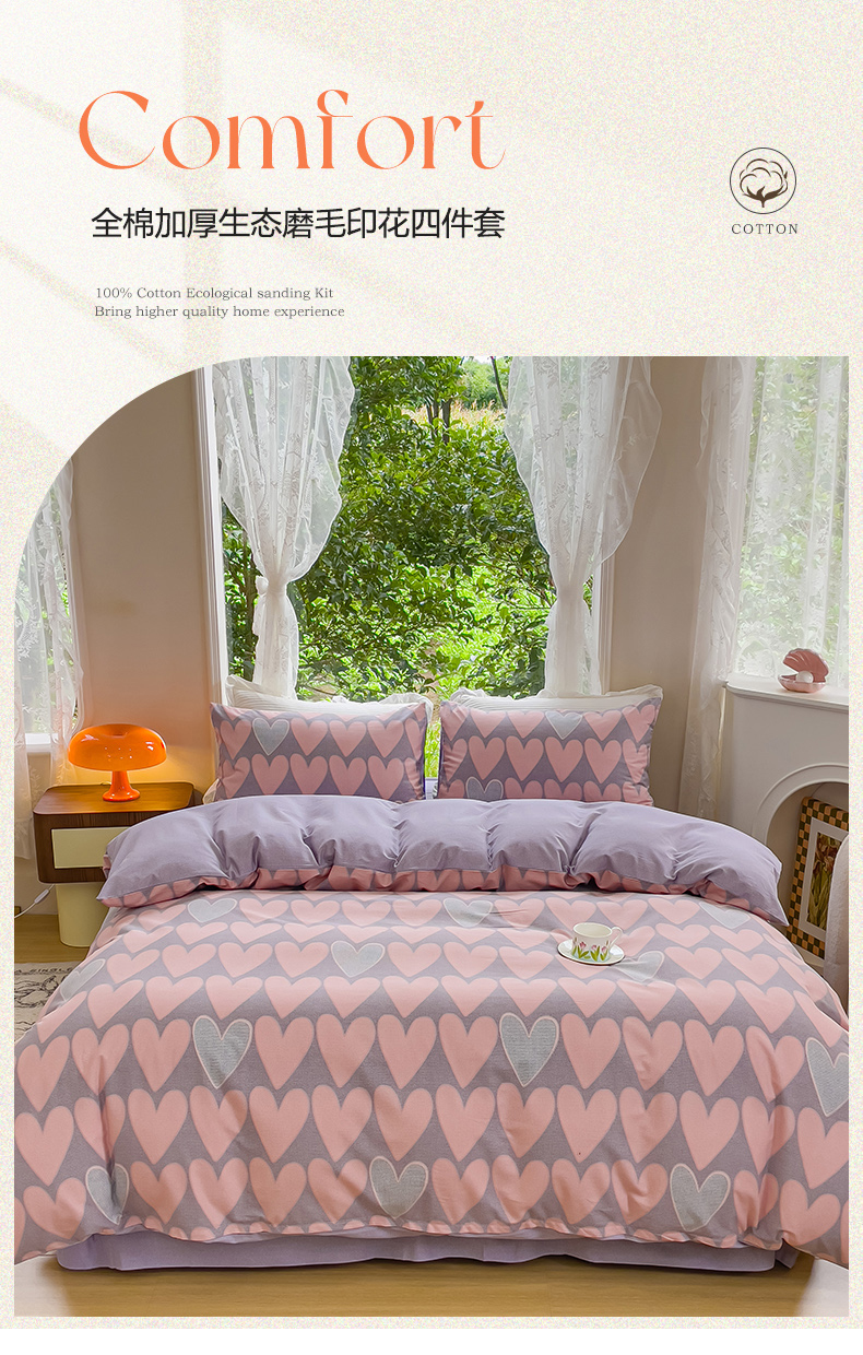 商品名称:感遇家纺 2023新款印花系列全棉生态磨毛加厚四件套 欣恬