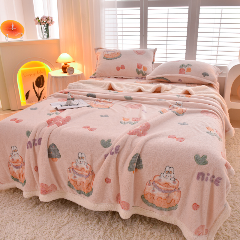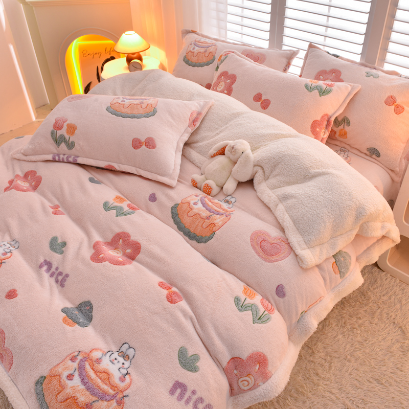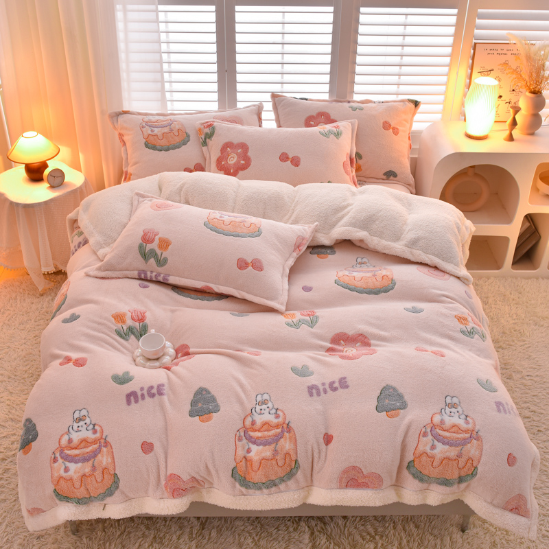 商品名称:同田家纺 2023年新款雪花绒&羊羔绒四件套 蛋糕兔