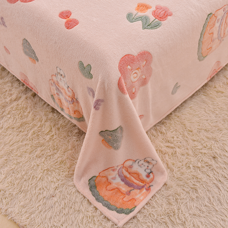 (总)同田家纺 2023新款牛奶绒韩系花边床盖系列,芳草集,粉诺,花季女孩,七彩熊,小花兔,薰衣草,致青春