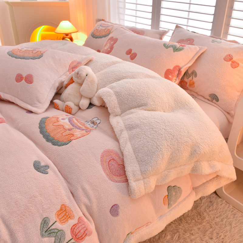 同田家纺 2023年新款雪花绒&羊羔绒四件套 蛋糕兔