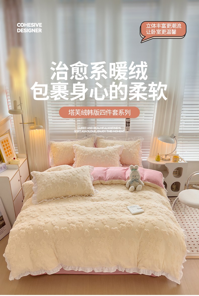(总)澳梵 2023新款塔芙绒韩版四件套,温柔梦境-嫩黄,温柔梦境-卡其,温柔梦境-奶白,温柔梦境-草绿,温柔梦境-暖粉,温柔梦境-婴儿蓝,猜心心-粉色,猜心心-绿色,猜心心-奶白黄,猜心心-紫色,格子铺-粉灰,格子铺-黄色,格子铺-蓝色,格子铺-奶白绿,花梦-紫色,花梦-蓝,花梦-粉白,花梦-豆绿,花梦-粉