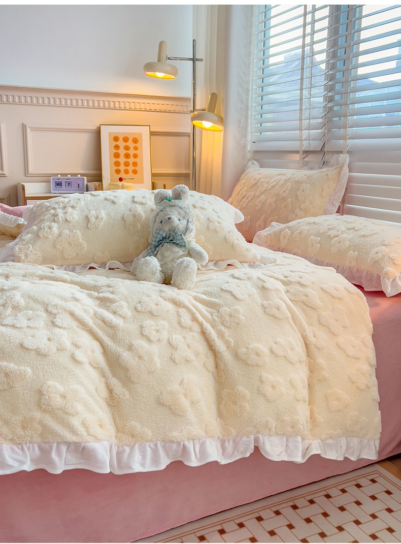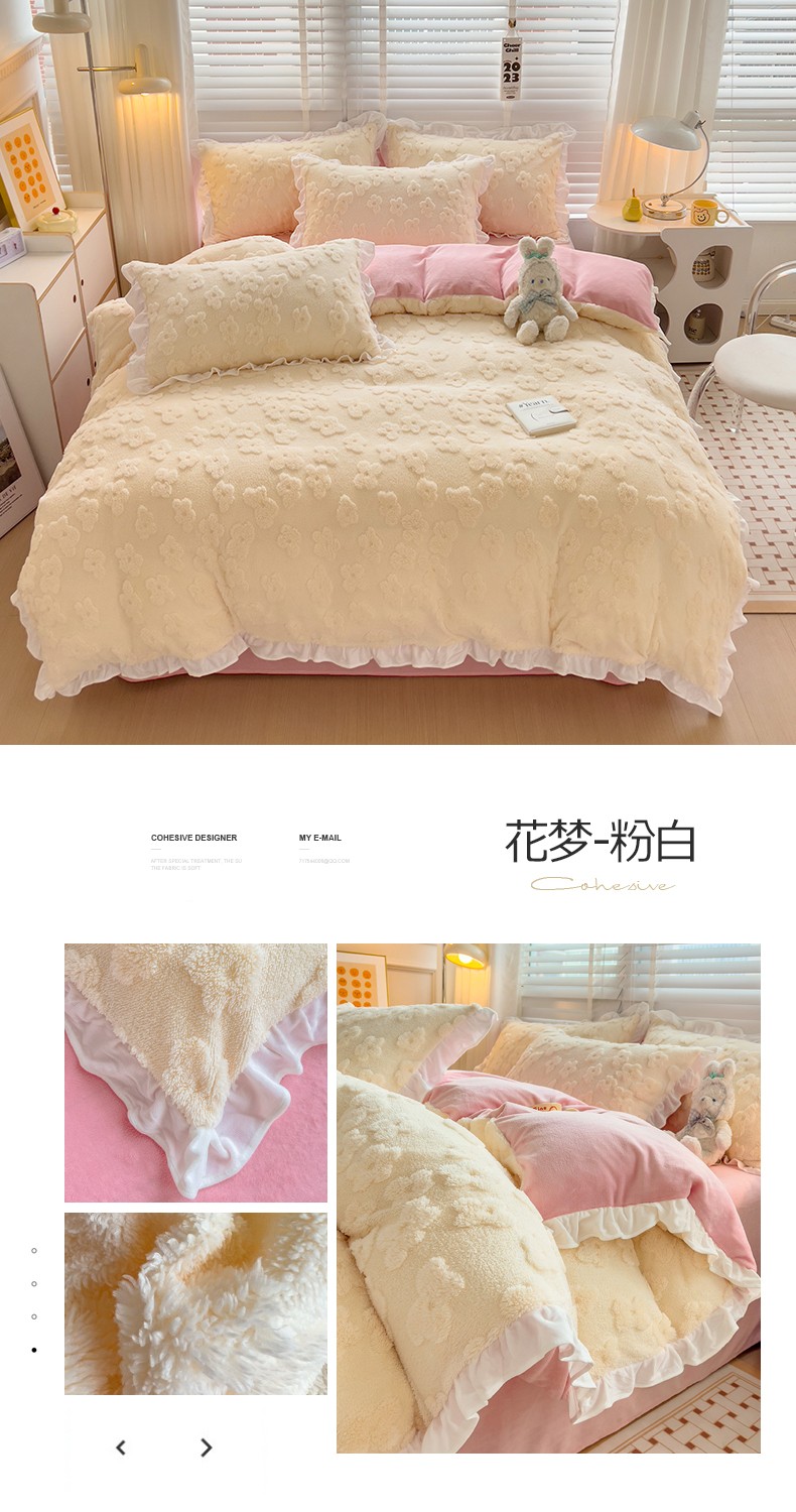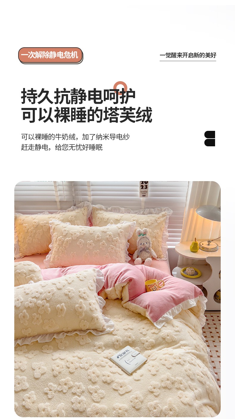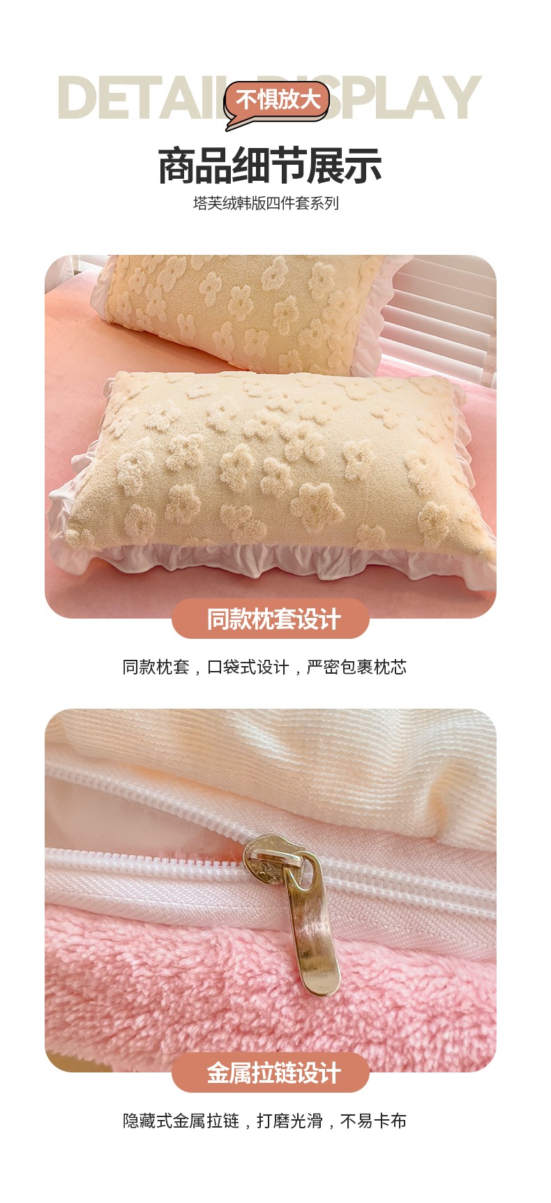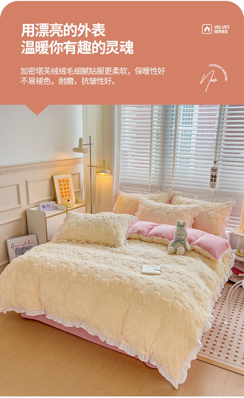 商品名称:澳梵 2023新款温柔梦境花梦塔芙绒韩版四件套 花梦-粉白