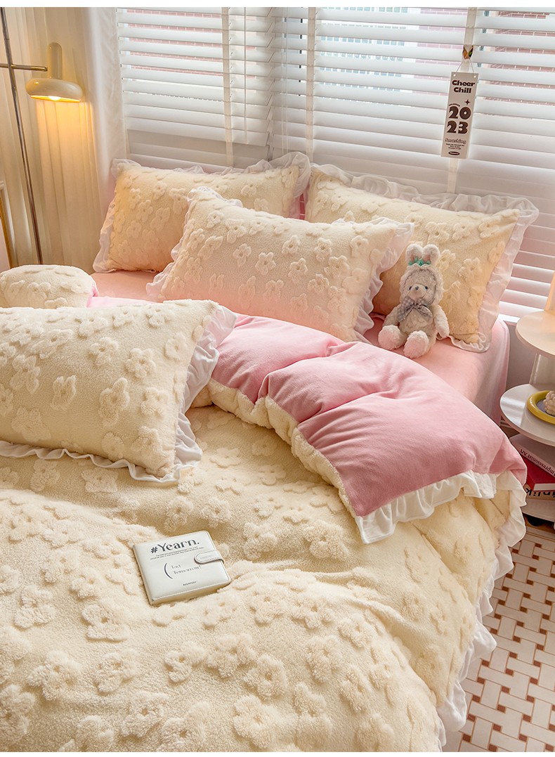 澳梵 2023新款温柔梦境花梦塔芙绒韩版四件套 花梦-粉白