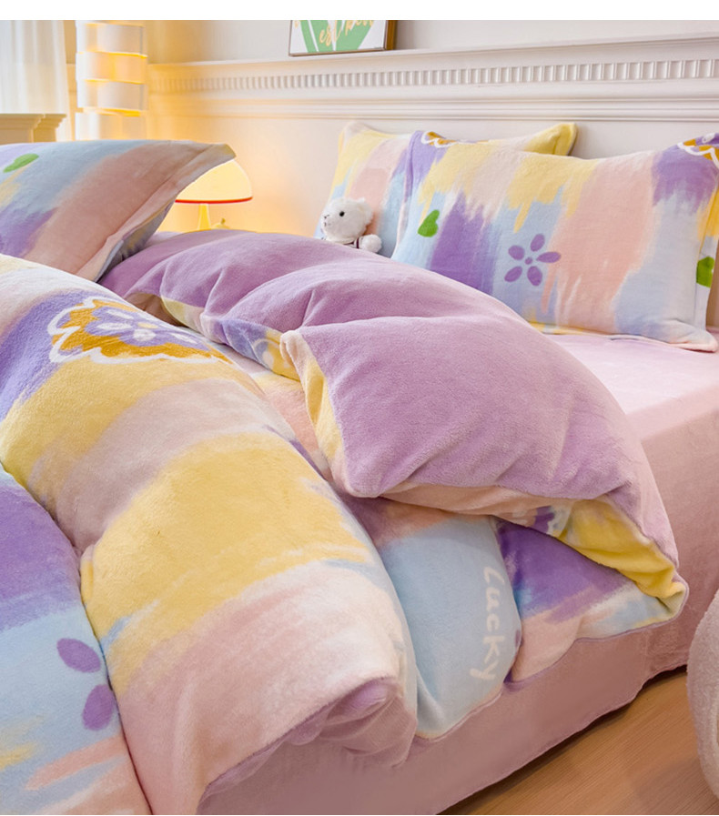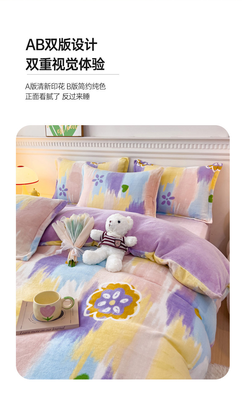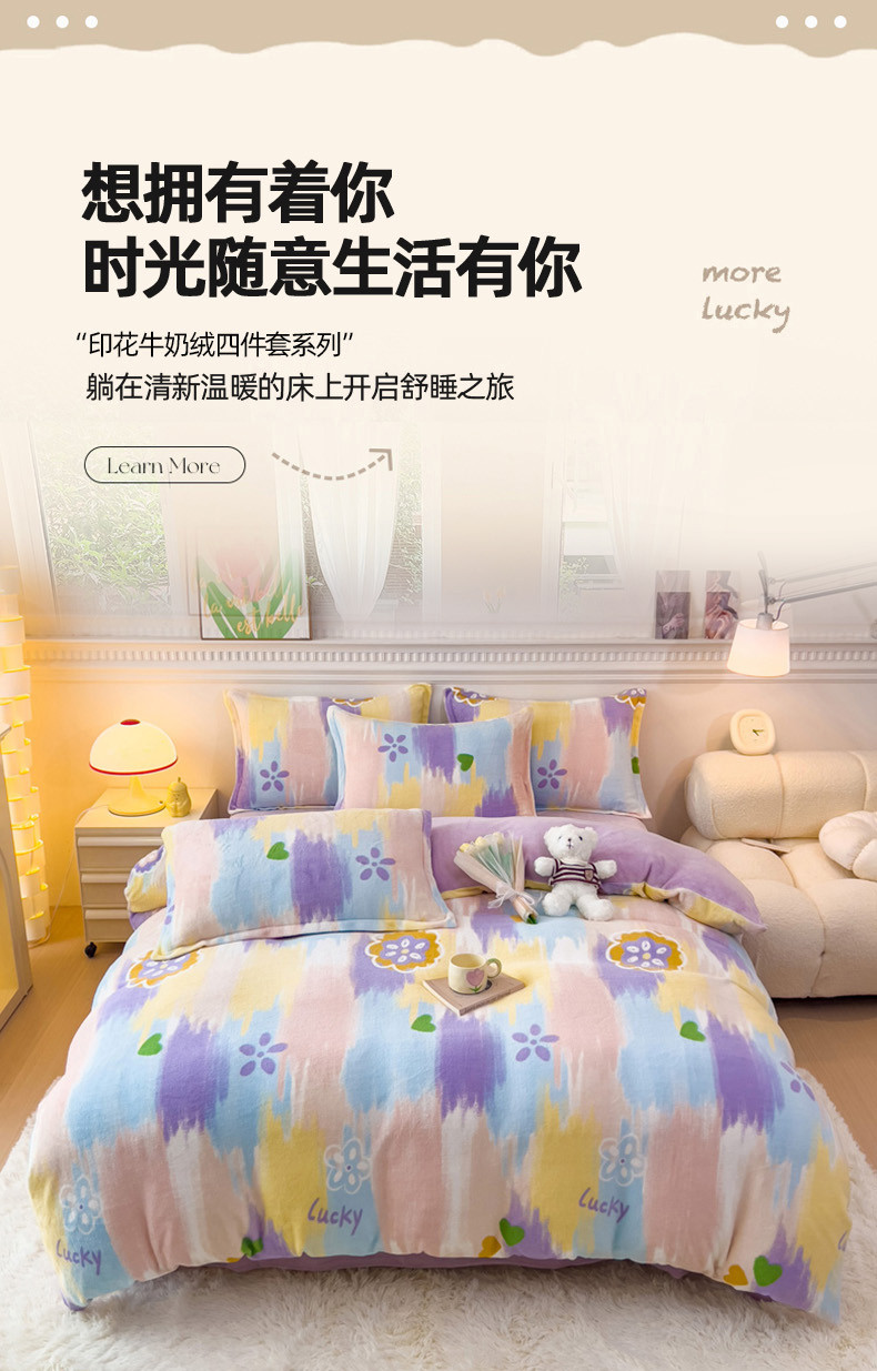 宜家坊 2023新款小清新加厚印花牛奶绒四件套 简单款-流星花园