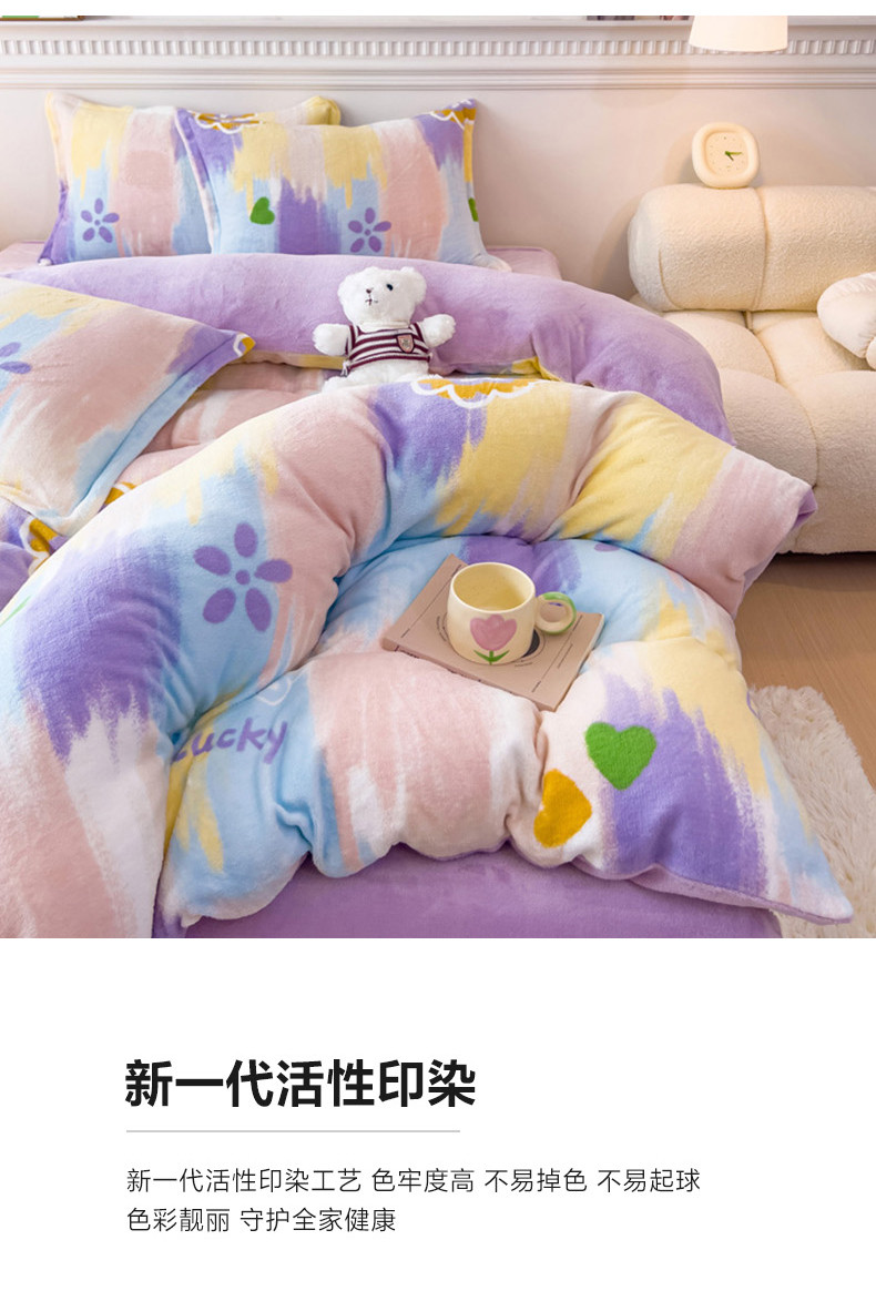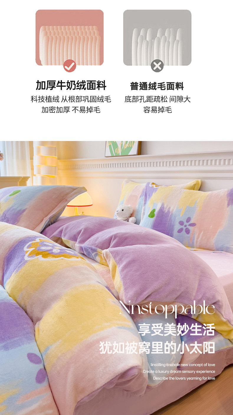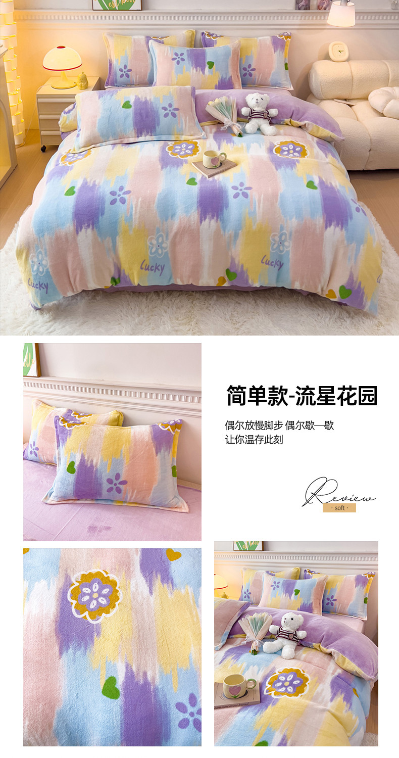 商品名称:宜家坊 2023新款小清新加厚印花牛奶绒四件套 简单款-流星花园