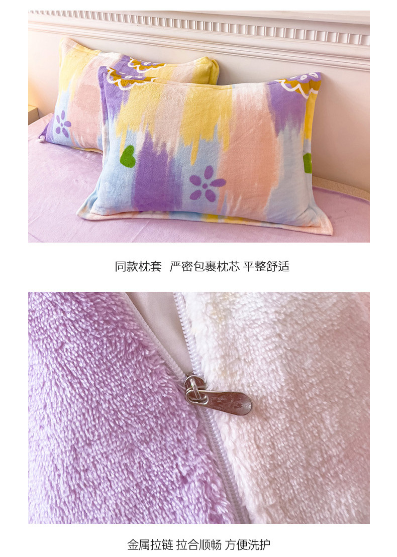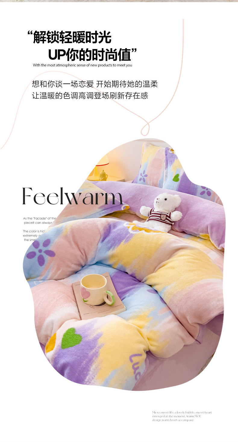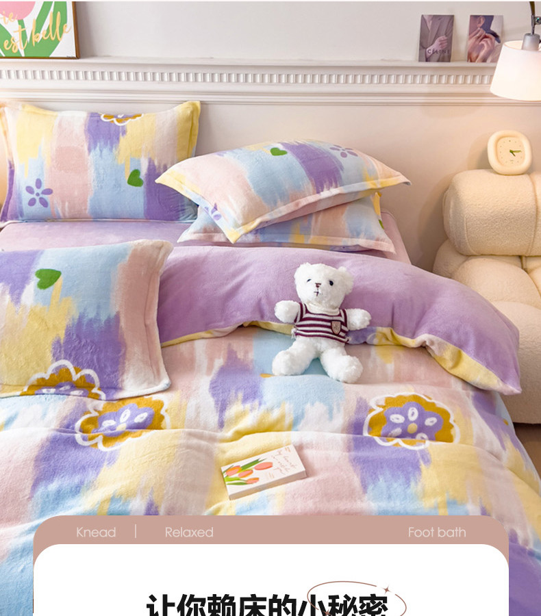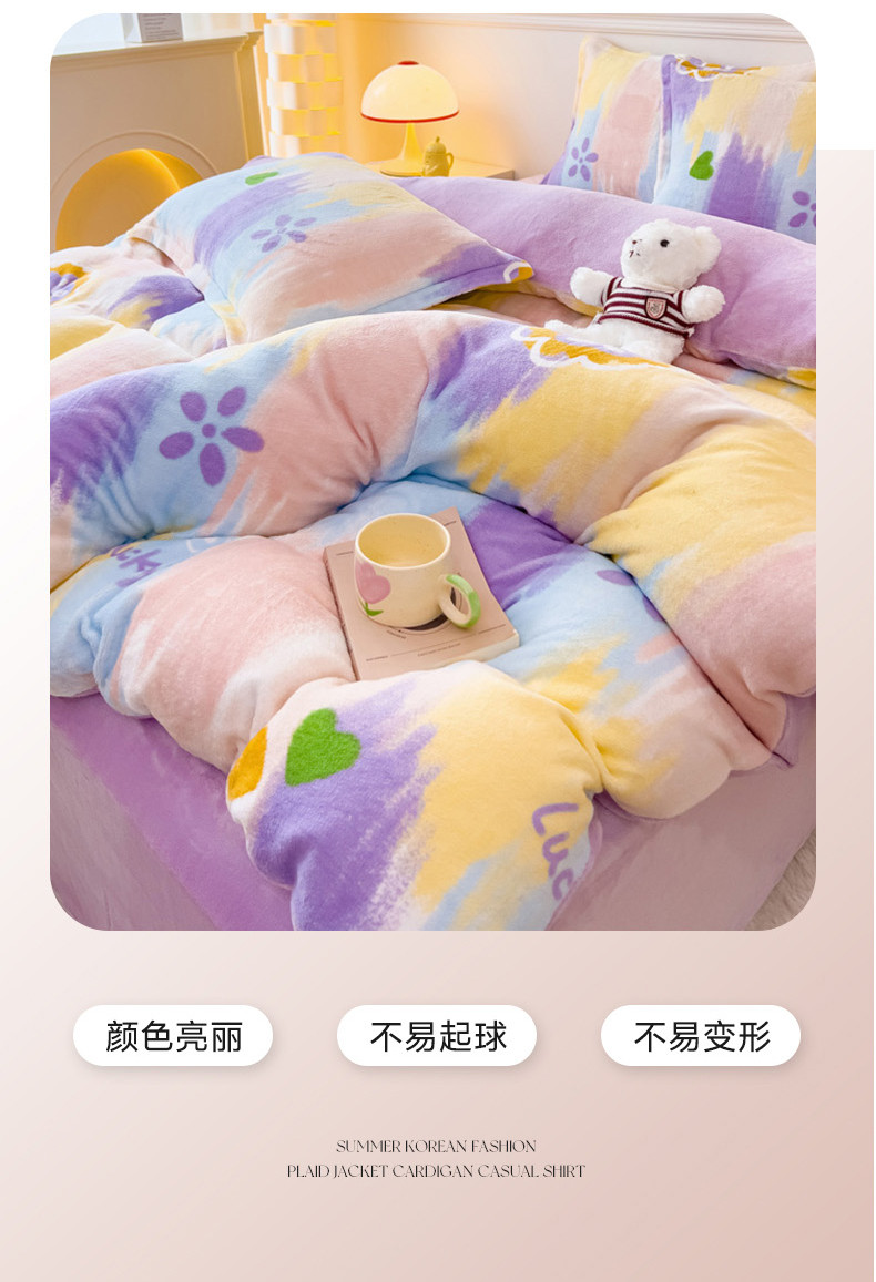 商品名称:宜家坊 2023新款小清新加厚印花牛奶绒四件套 简单款-流星花园