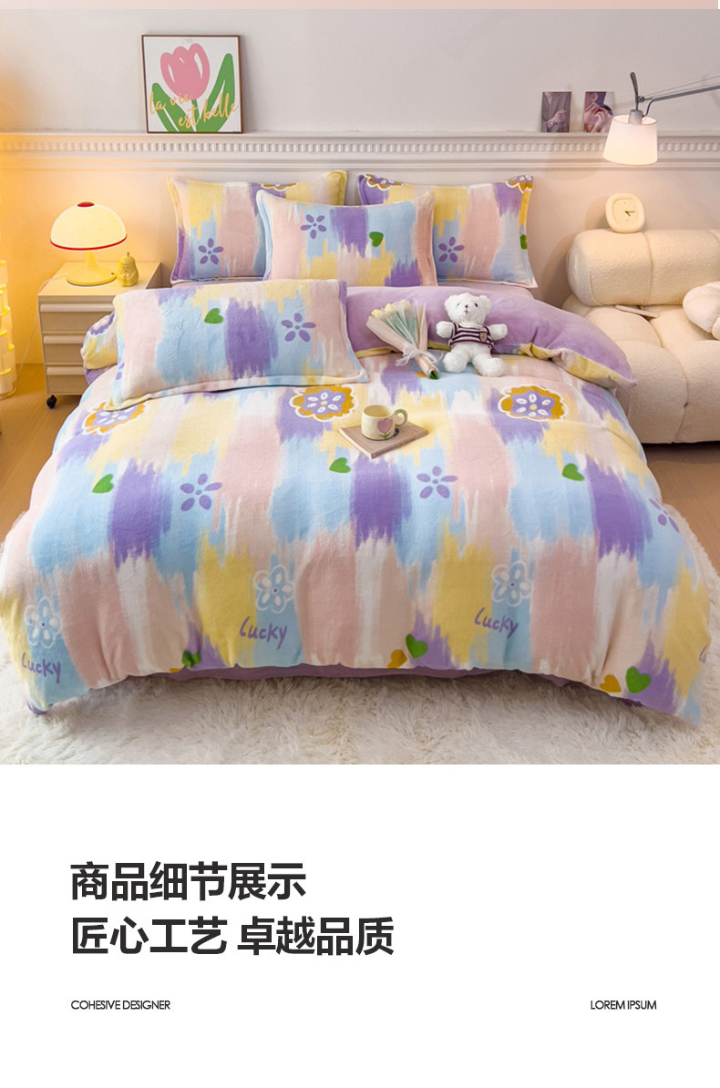 (总)宜家坊 2023新款小清新加厚印花牛奶绒四件套,简单款-彩色波点,简单款-花香四溢,简单款-花颜-白,简单款-花园女孩,简单款-加油鸭,简单款-锦上添花,简单款-快乐小狗,简单款-流星花园,简单款-米菲兔,简单款-秘密花园,简单款-牛油果,简单款-森林小熊,简单款-小恐龙,简单款-一见倾心,简单款-芝士狗狗,简单款-紫色花园