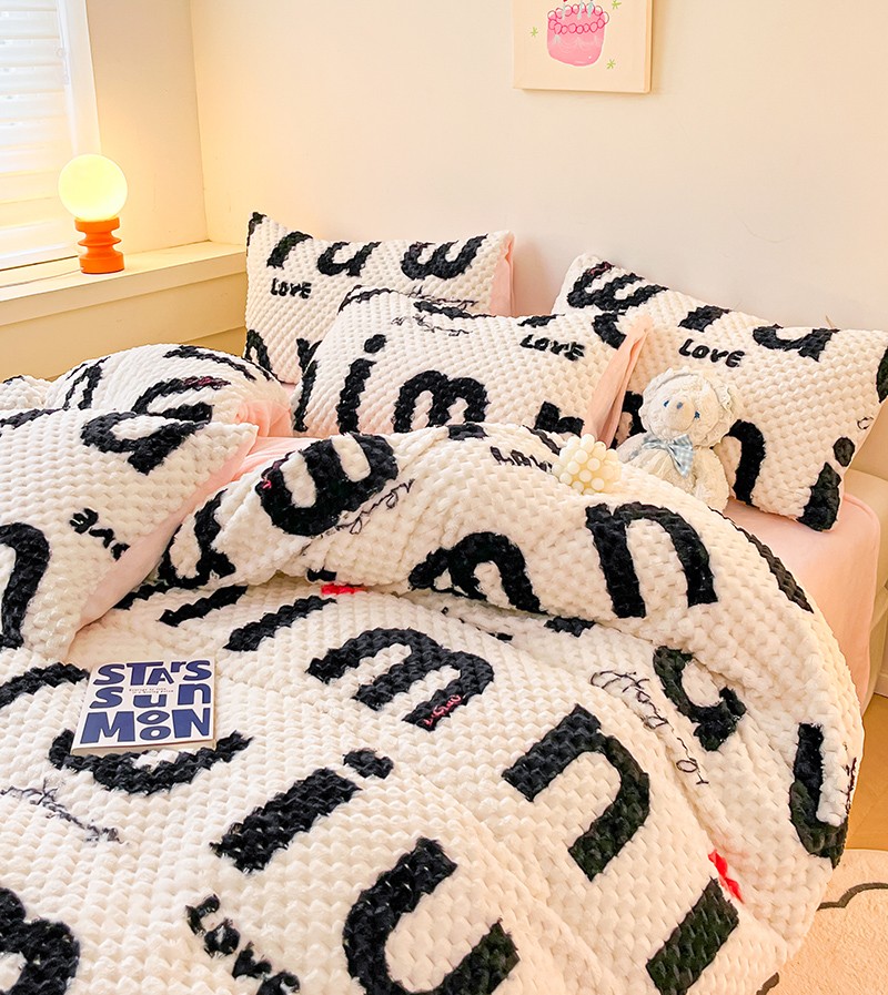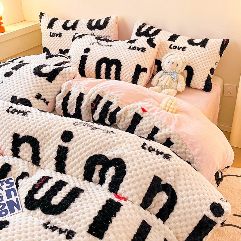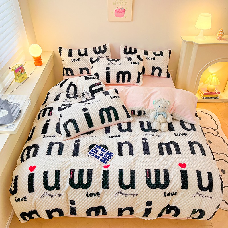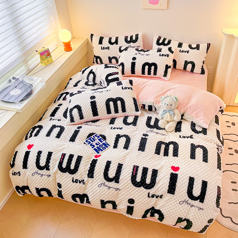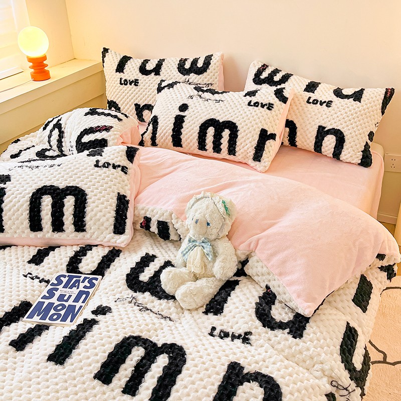 澳梵家居 2023新款印花豆豆绒牛奶绒四件套 M字母