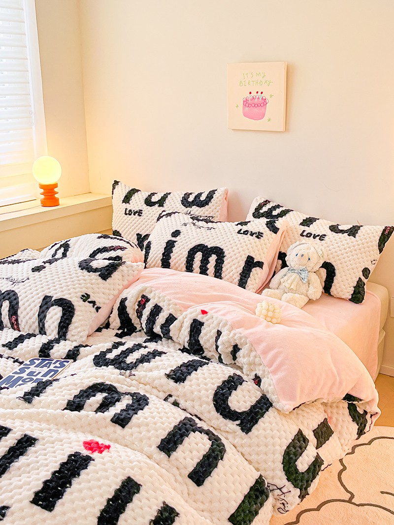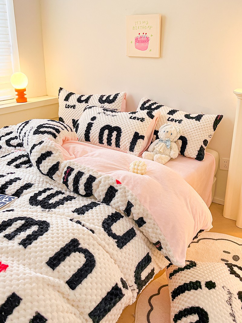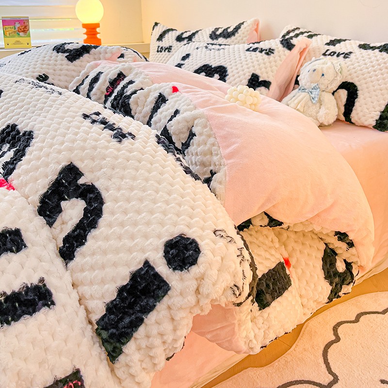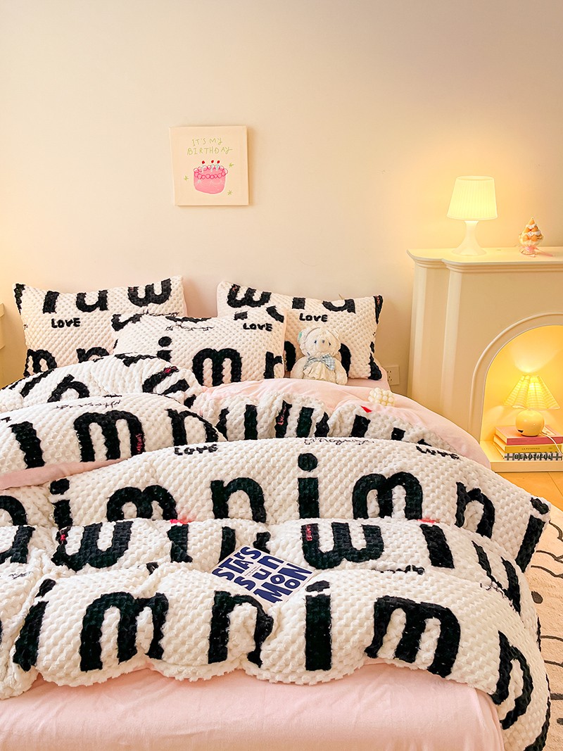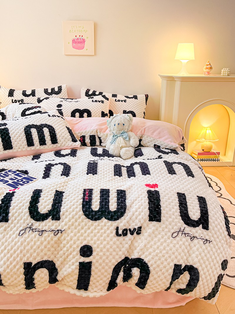 澳梵家居 2023新款印花豆豆绒牛奶绒四件套 M字母