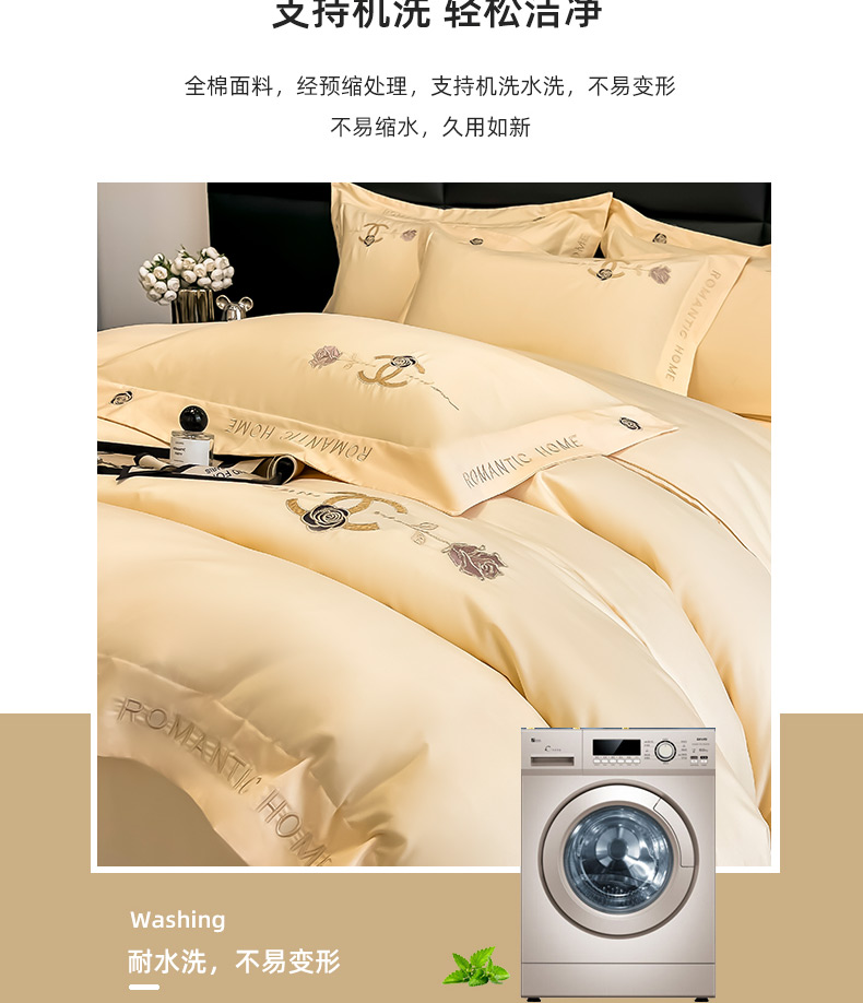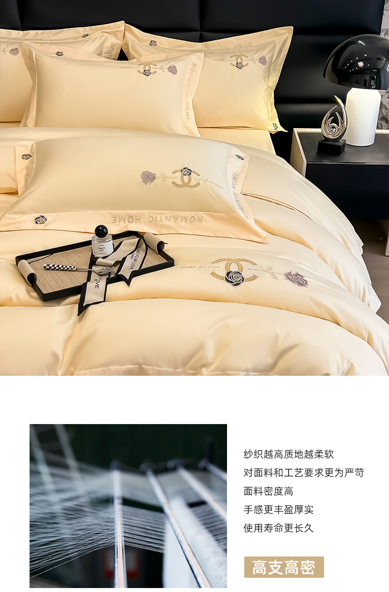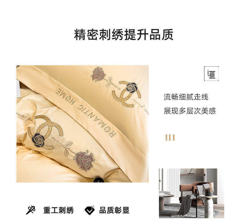 商品名称:梧桐家居 2023新款13376全棉轻奢刺绣四件套-罗薇系列 罗薇-香槟
