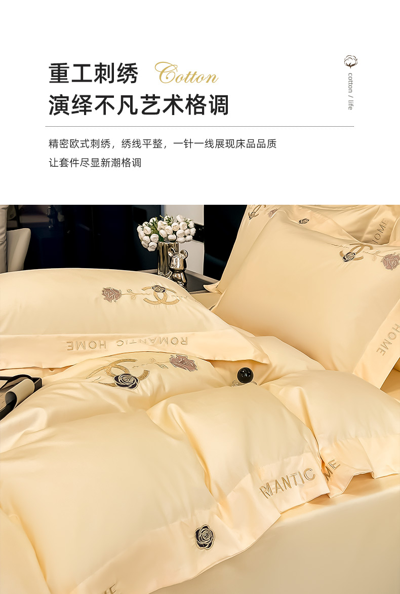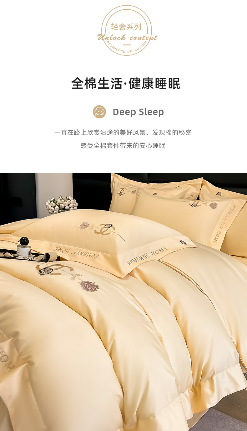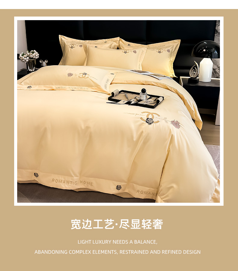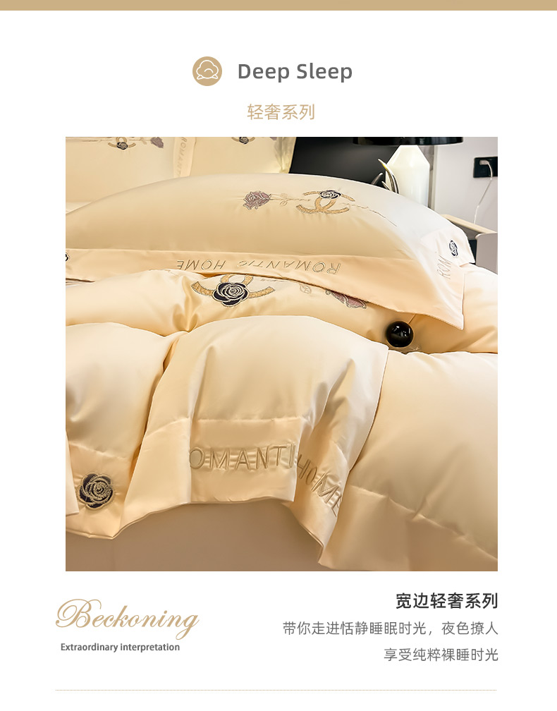 梧桐家居 2023新款13376全棉轻奢刺绣四件套-罗薇系列 罗薇-香槟