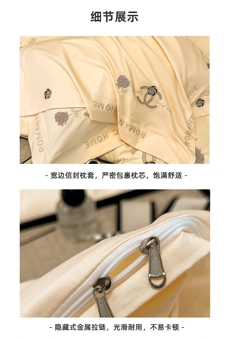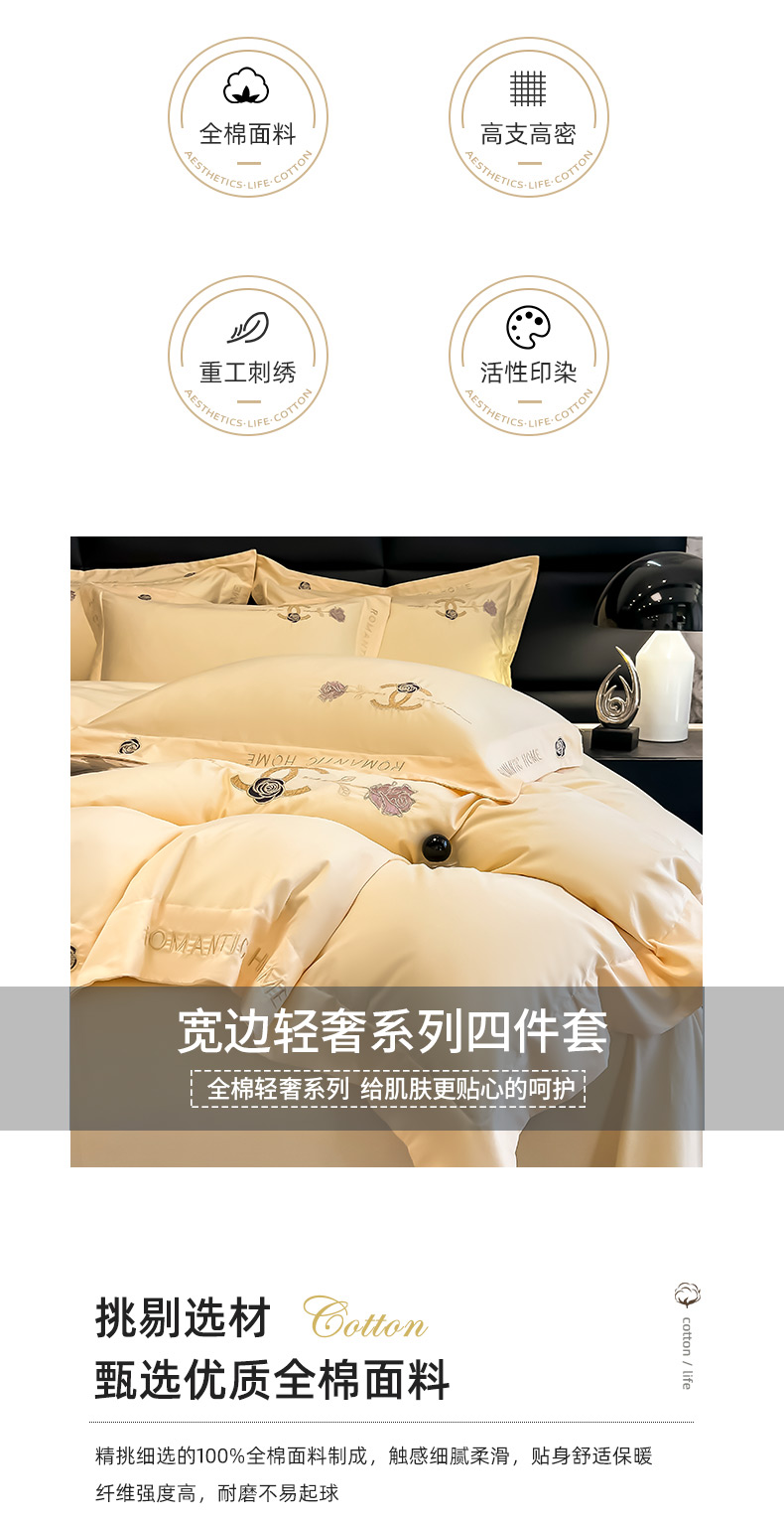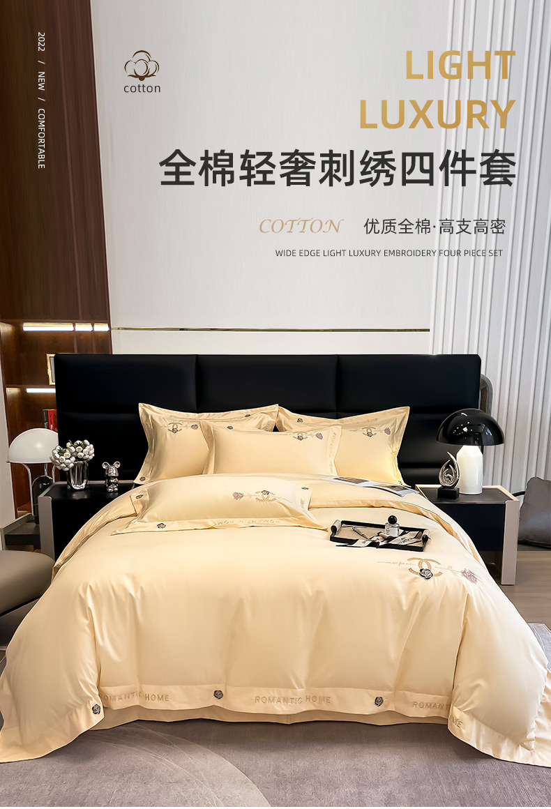 梧桐家居 2023新款13376全棉轻奢刺绣四件套-罗薇系列 罗薇-香槟