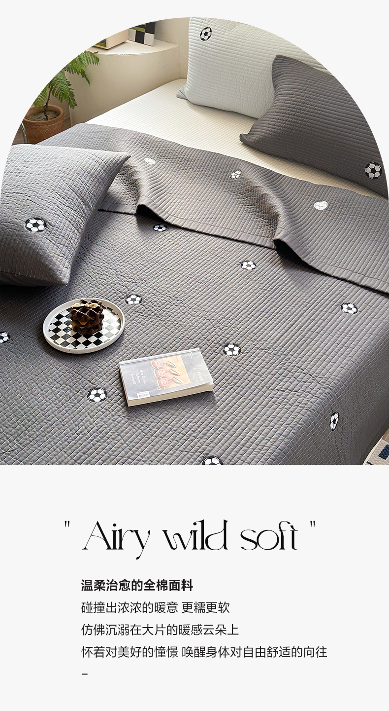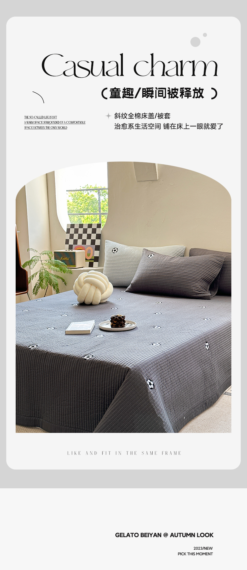 诗黛尔 2023秋冬新款全棉刺绣床单三件套可搭配被套 云烟灰