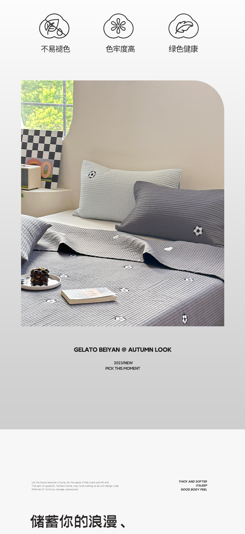 商品名称:诗黛尔 2023秋冬新款全棉刺绣床单三件套可搭配被套 云烟灰