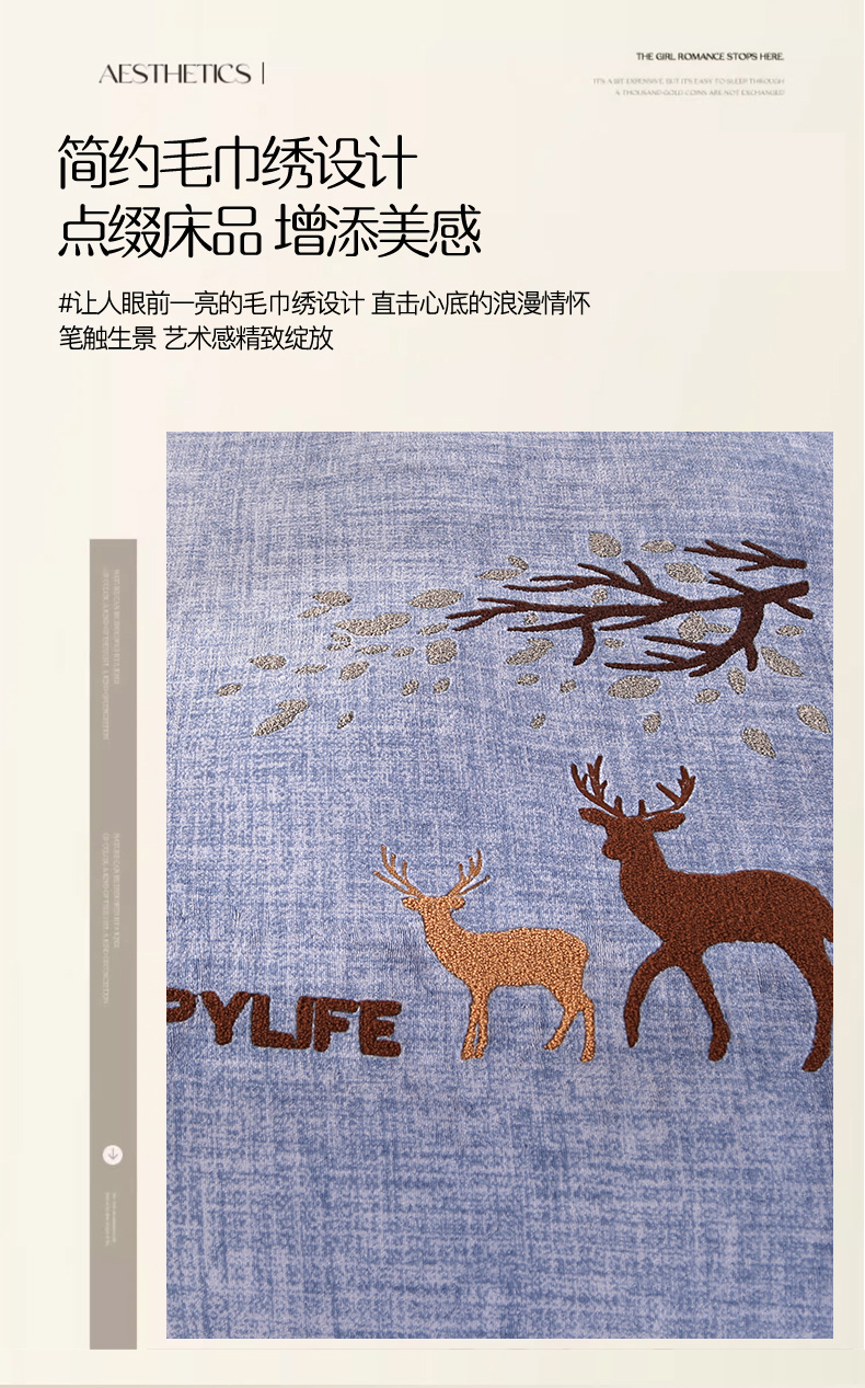 商品名称:代芙家纺 2023秋冬新品全消光8.5斤牛奶绒加厚保暖毛巾绣四件套 小鹿-蓝