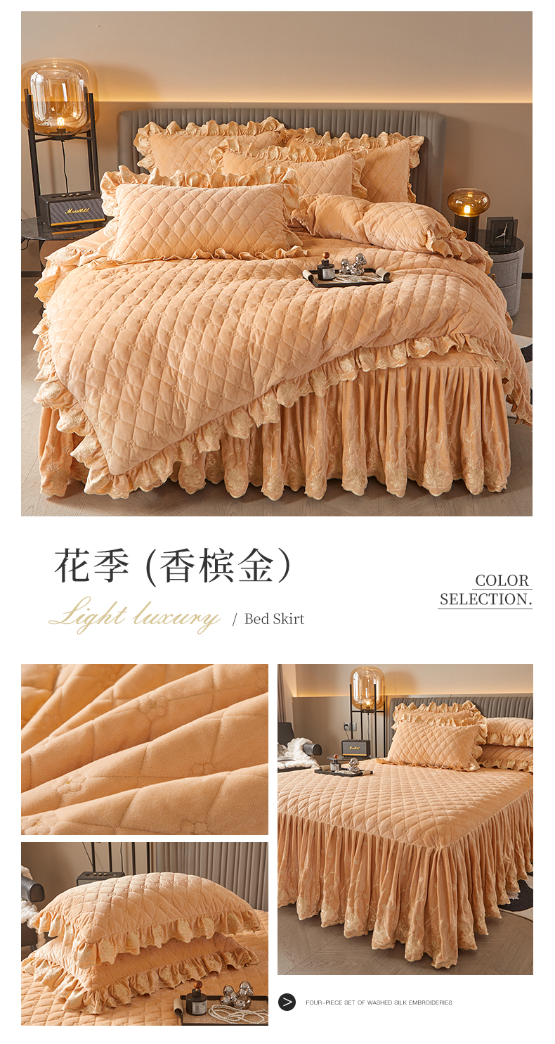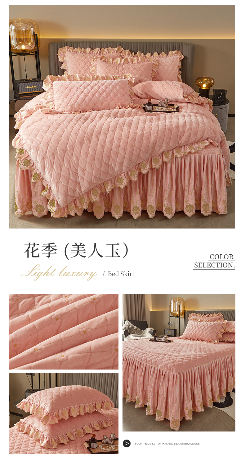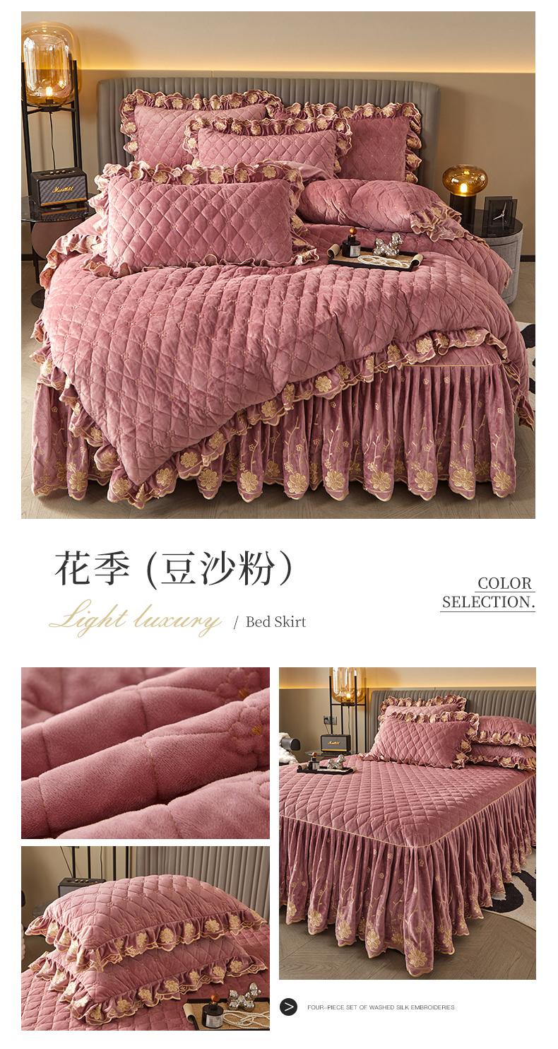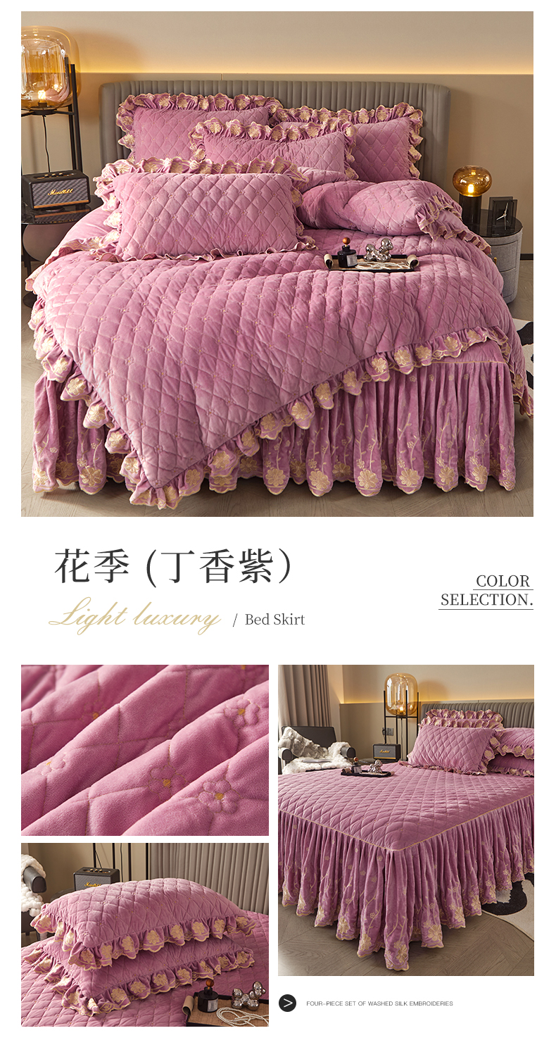 商品名称:(总)罗艺轩 2024新款花季宝宝绒全套夹棉絎缝加厚系列床裙套件