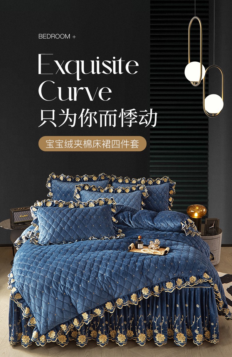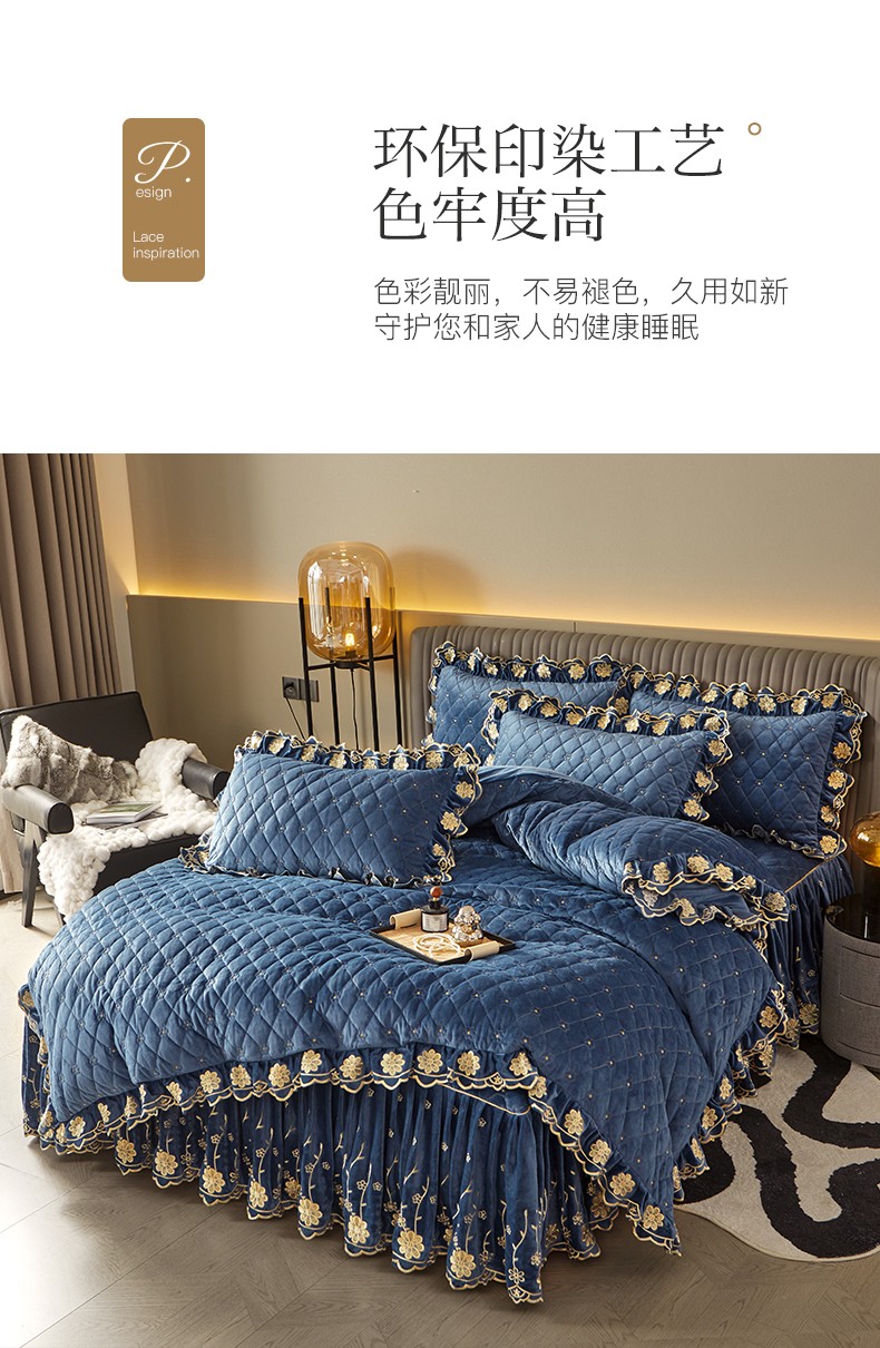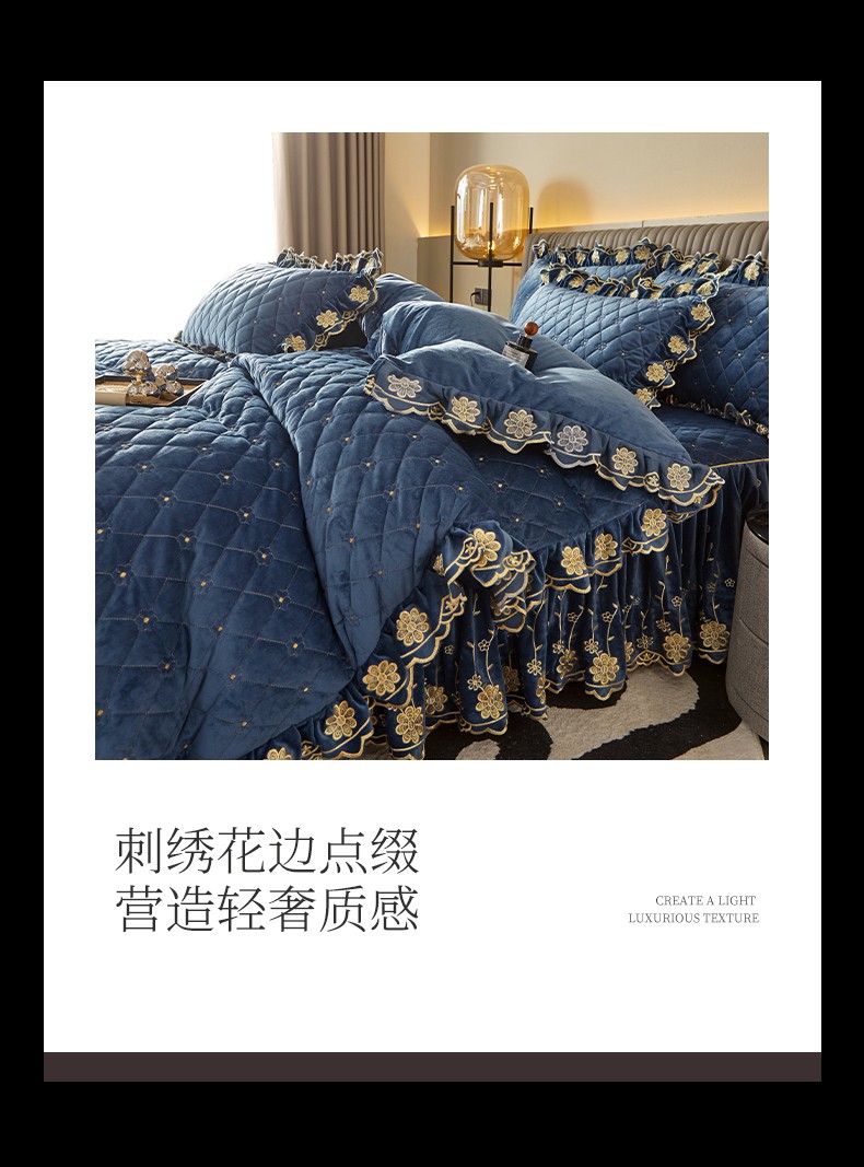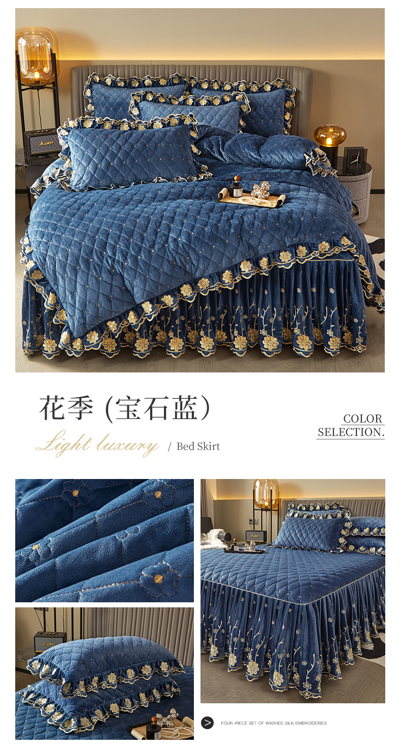 商品名称:(总)罗艺轩 2024新款花季宝宝绒全套夹棉絎缝加厚系列床裙套件