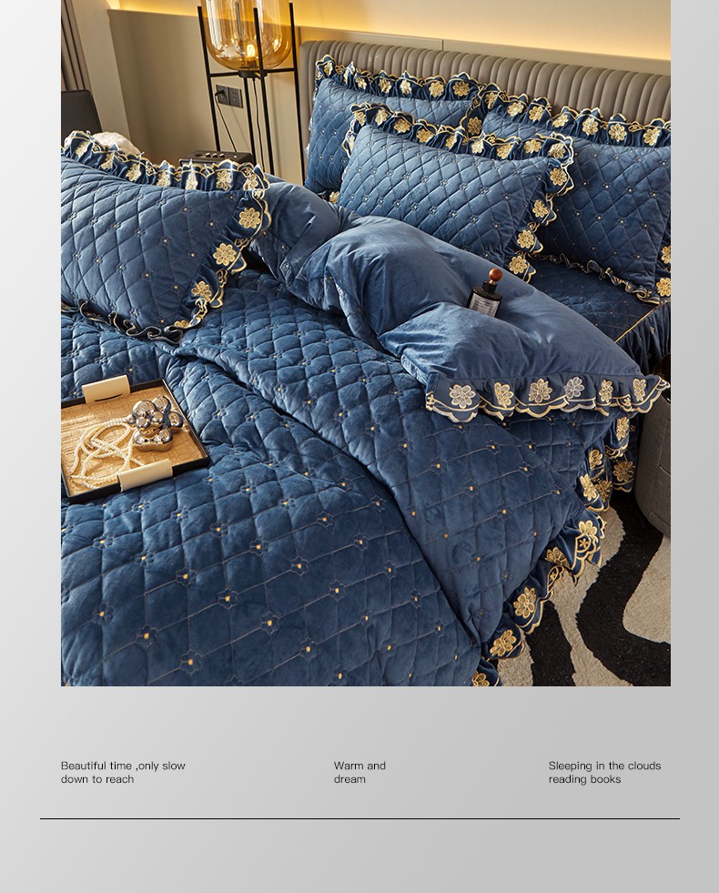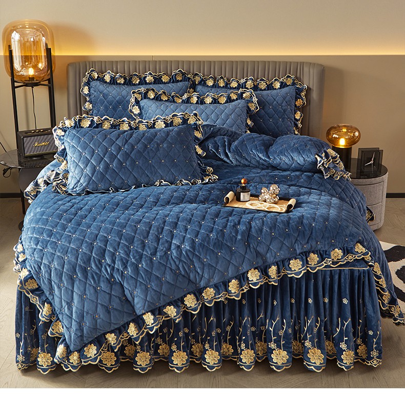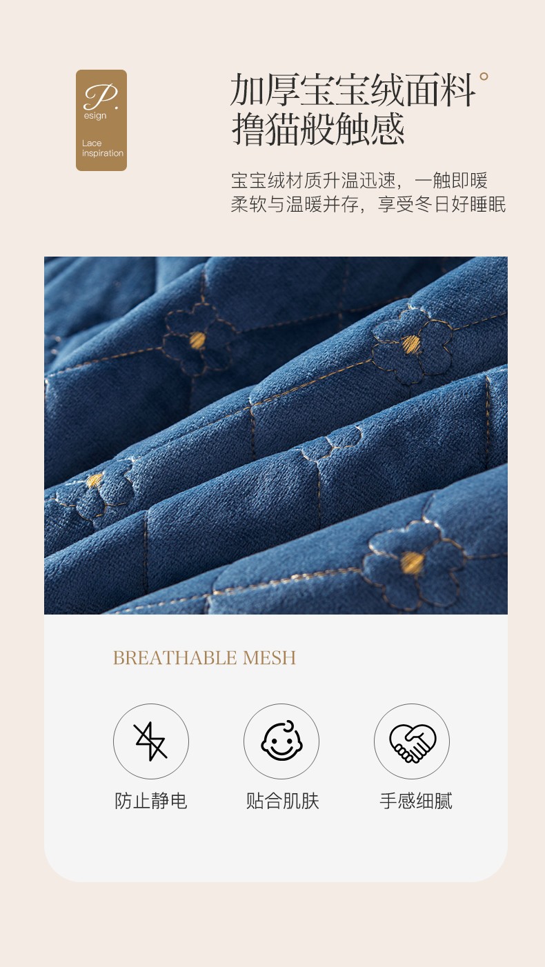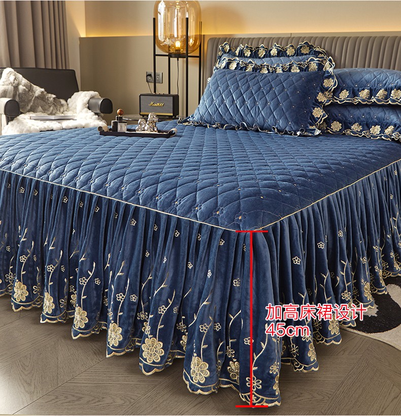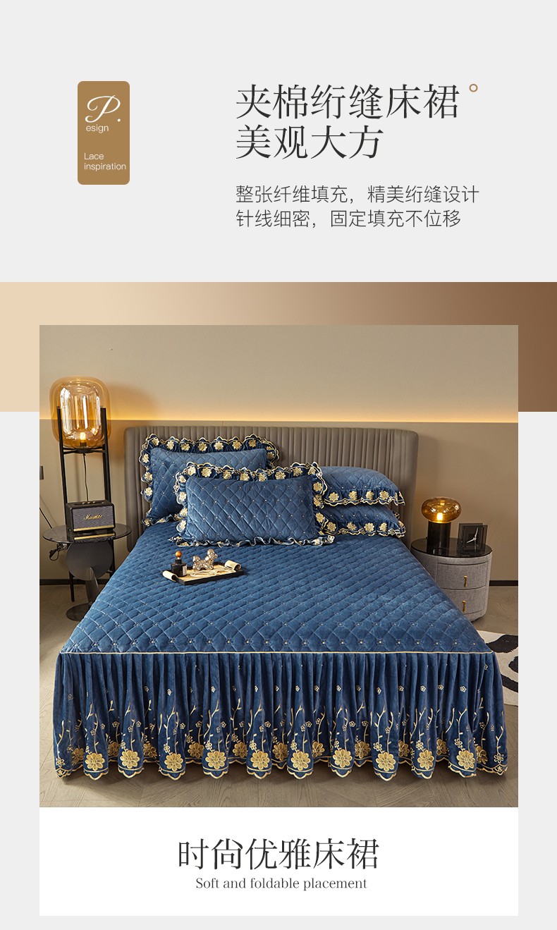 商品名称:(总)罗艺轩 2024新款花季宝宝绒全套夹棉絎缝加厚系列床裙套件