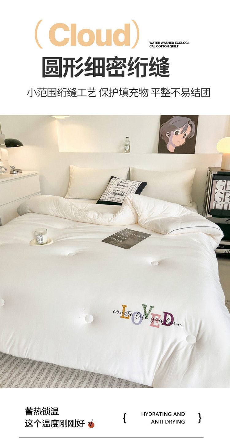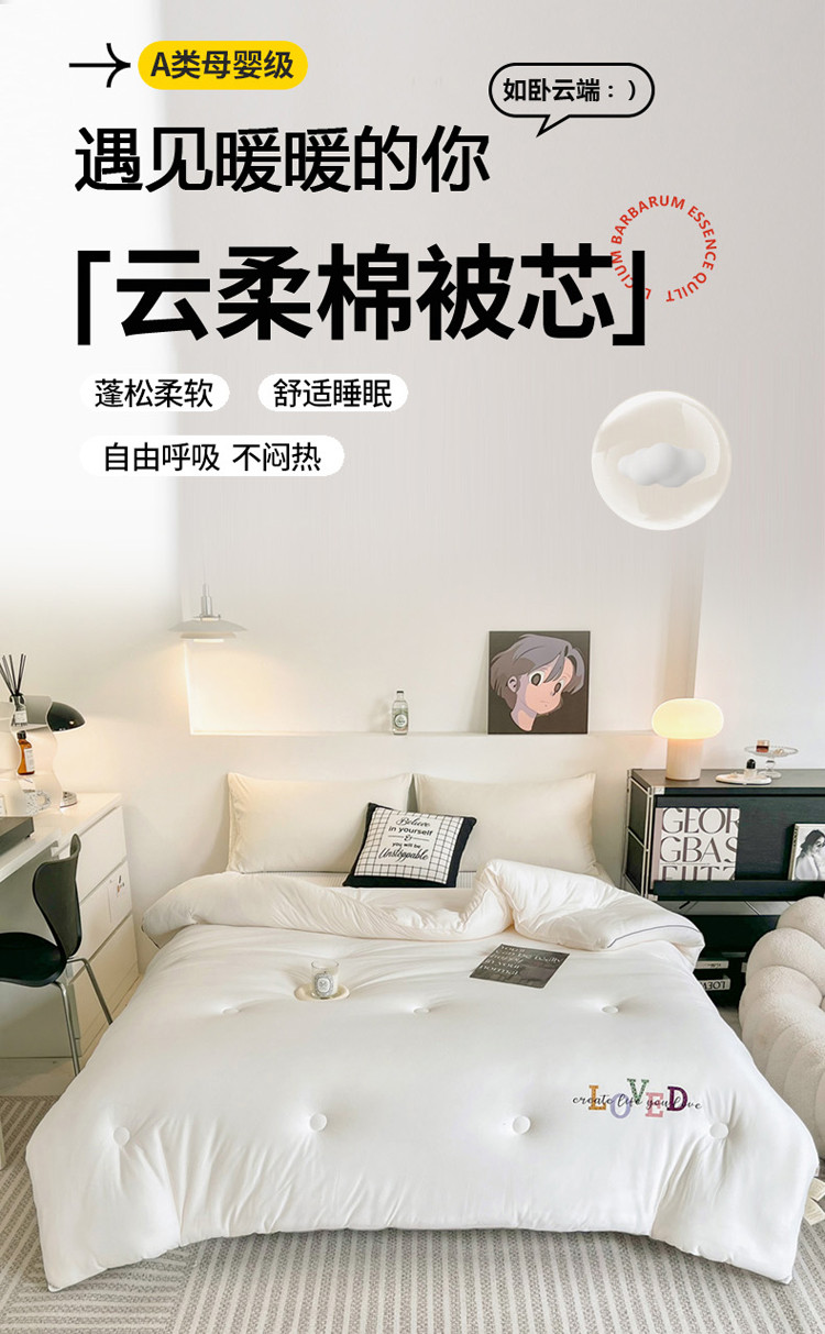 商品名称:寐居 2023新款A类云柔棉被芯-烫画字母-纯白