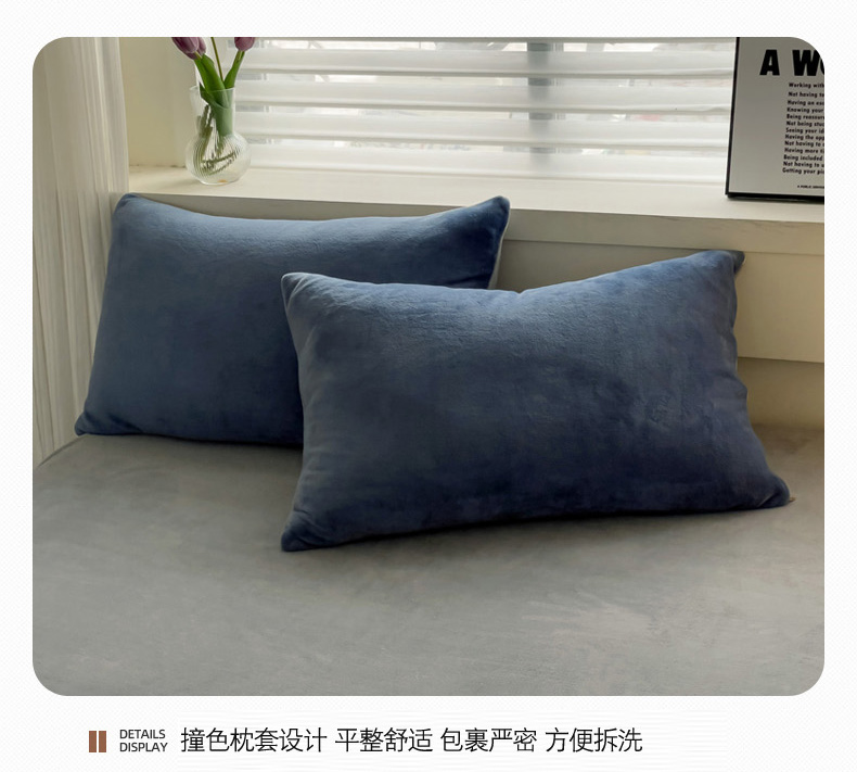 寐居 2023新款高克重拼色牛奶绒四件套 宝石蓝灰