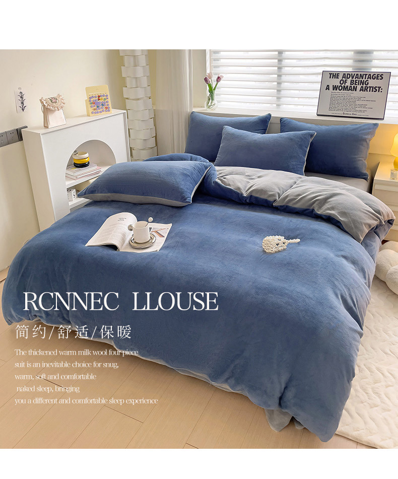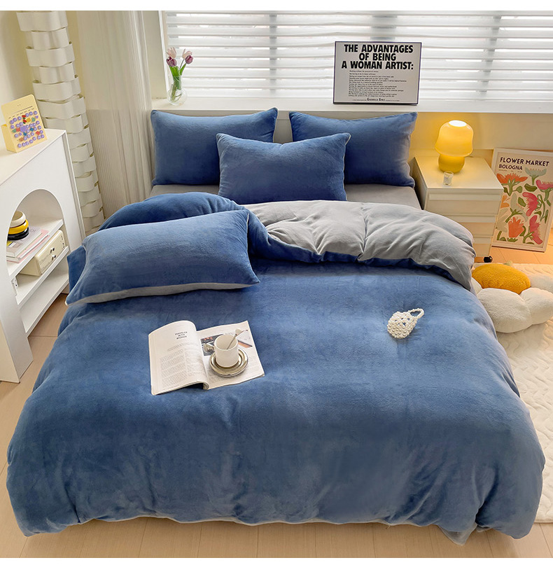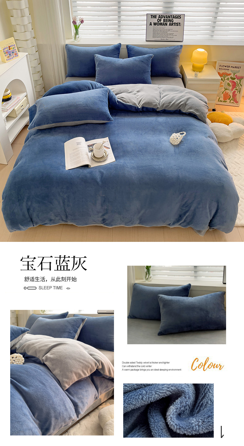 商品名称:寐居 2023新款高克重拼色牛奶绒四件套 宝石蓝灰