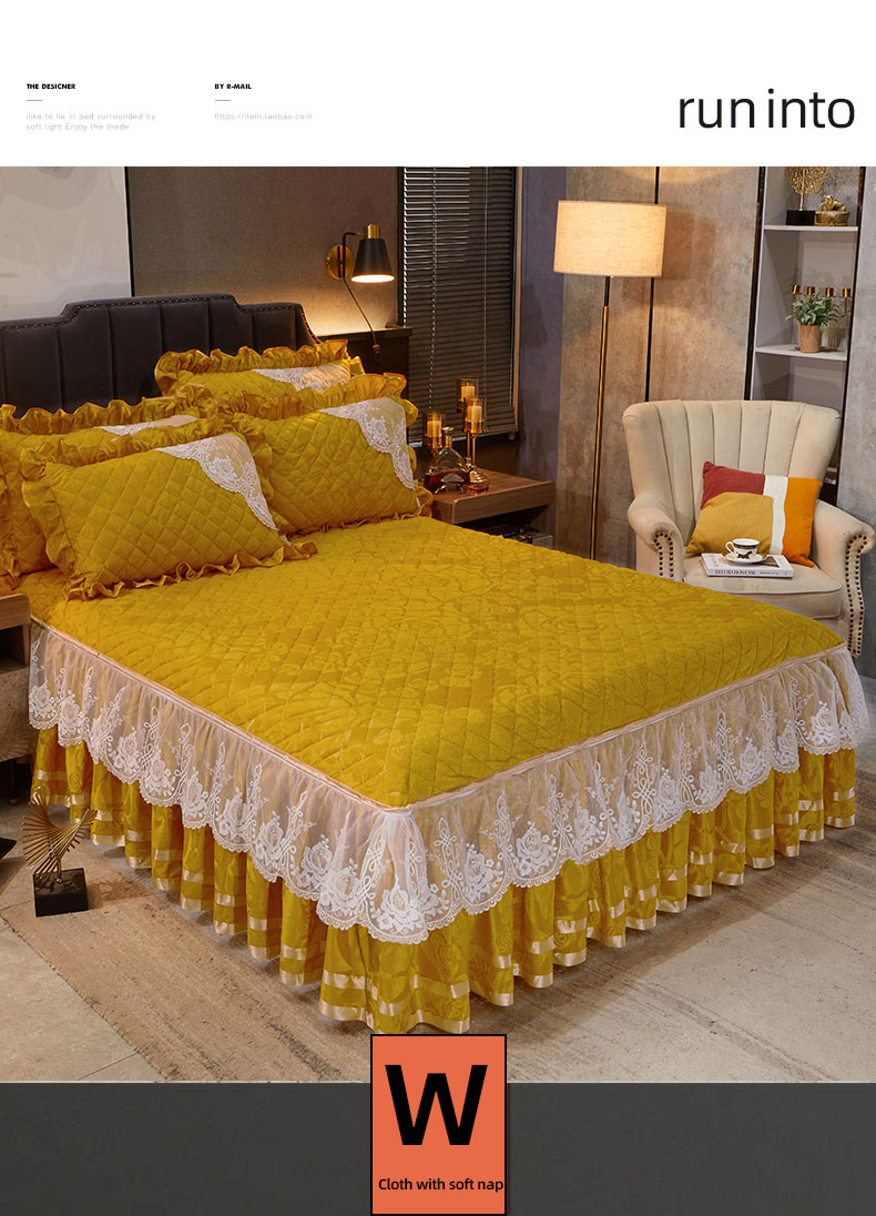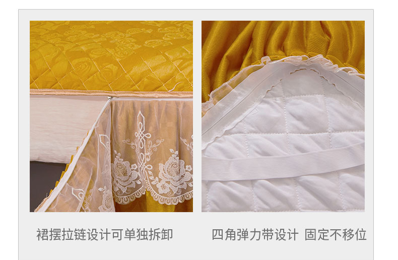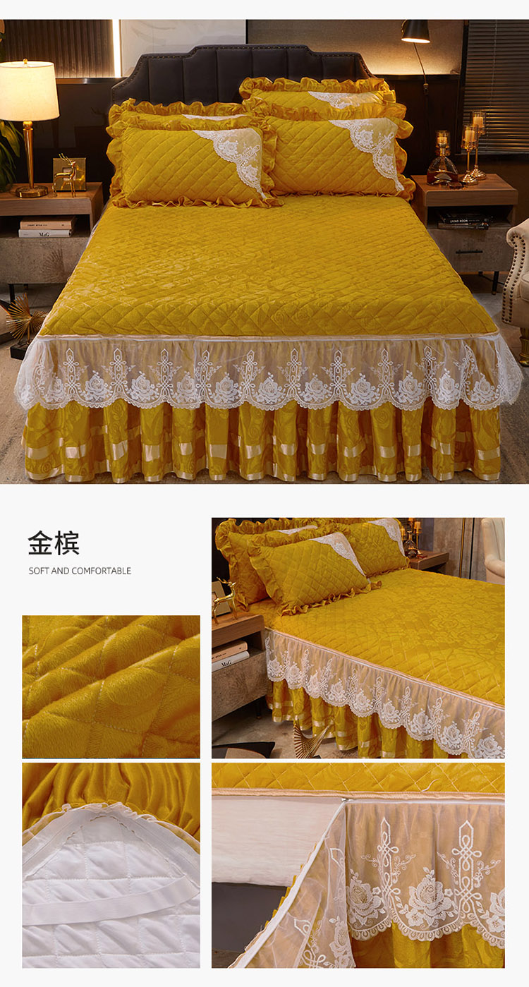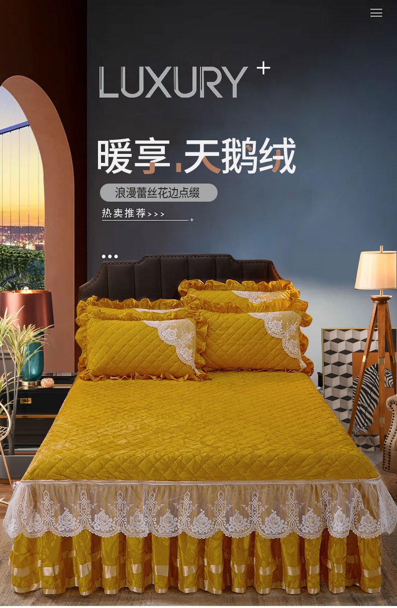 恋尚 2023新款天鹅绒可脱卸夹棉床裙 床盖四件套 床裙 金槟