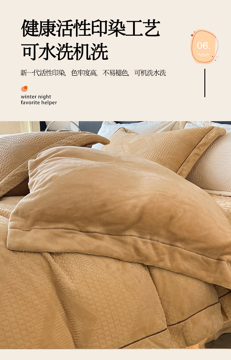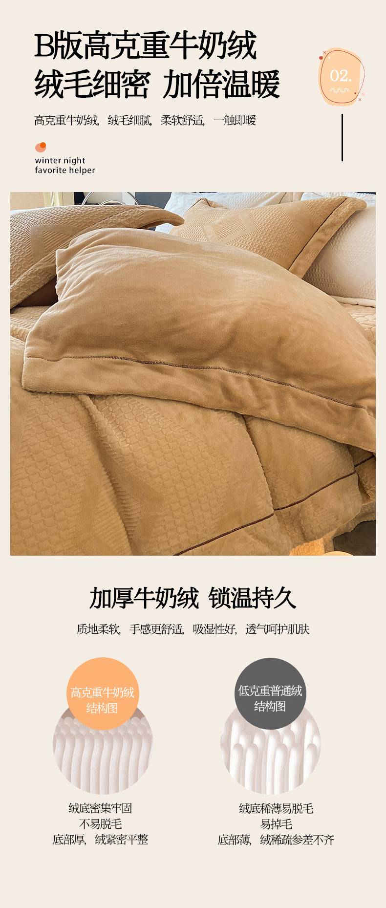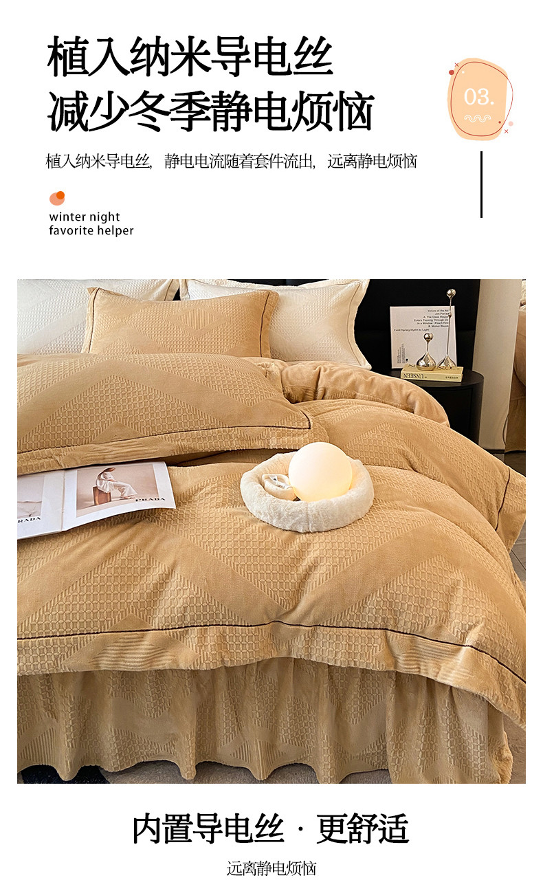 商品名称:美伦美焕2023新款纯色立体雕花牛奶绒床盖四件套床裙款式 驼色