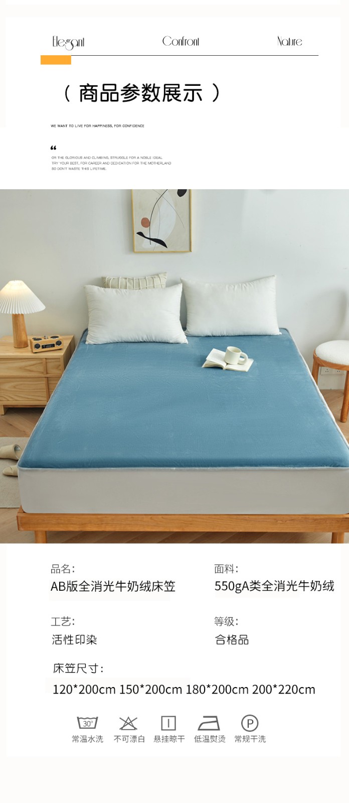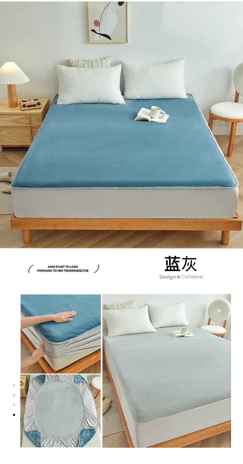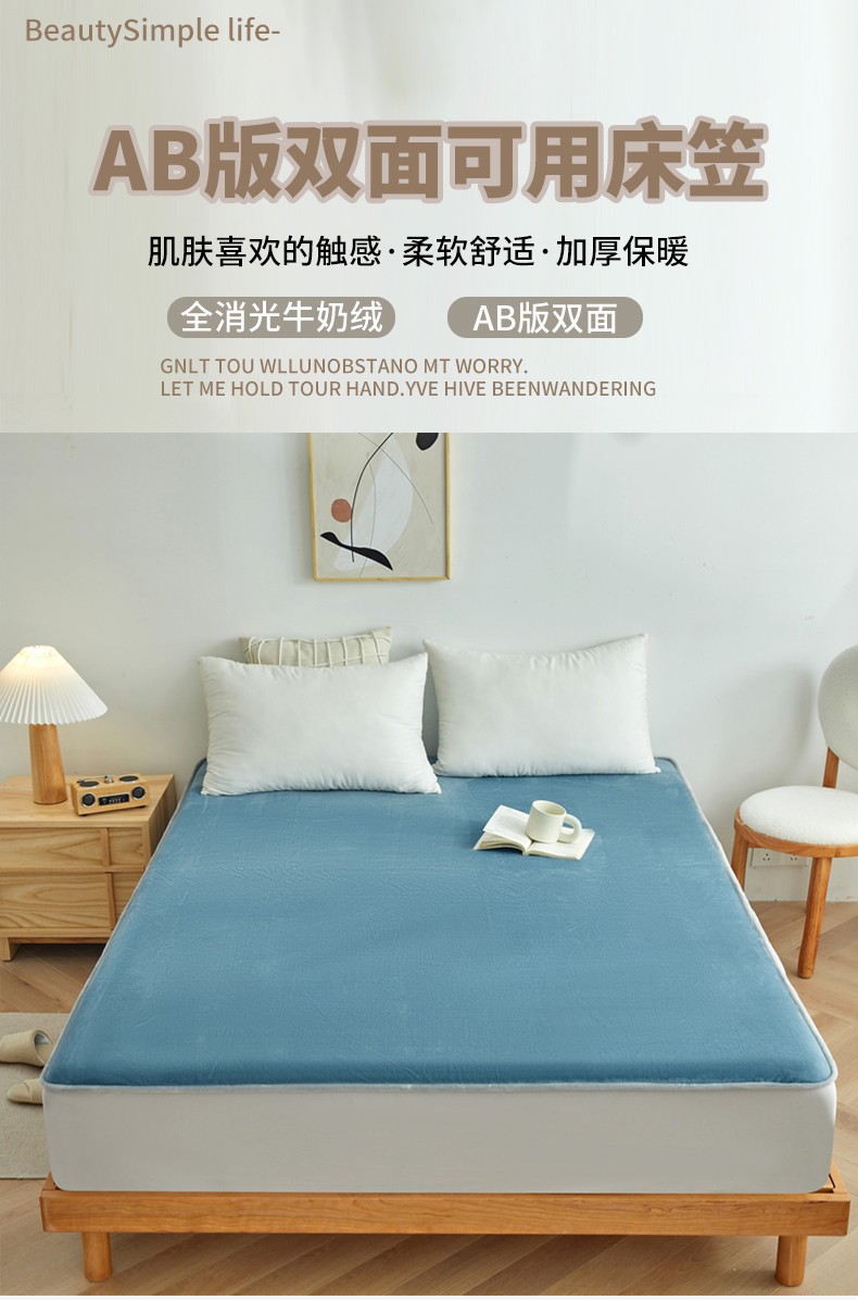 AB版双面牛奶绒床笠 复合保暖床笠 双面可用 蓝灰